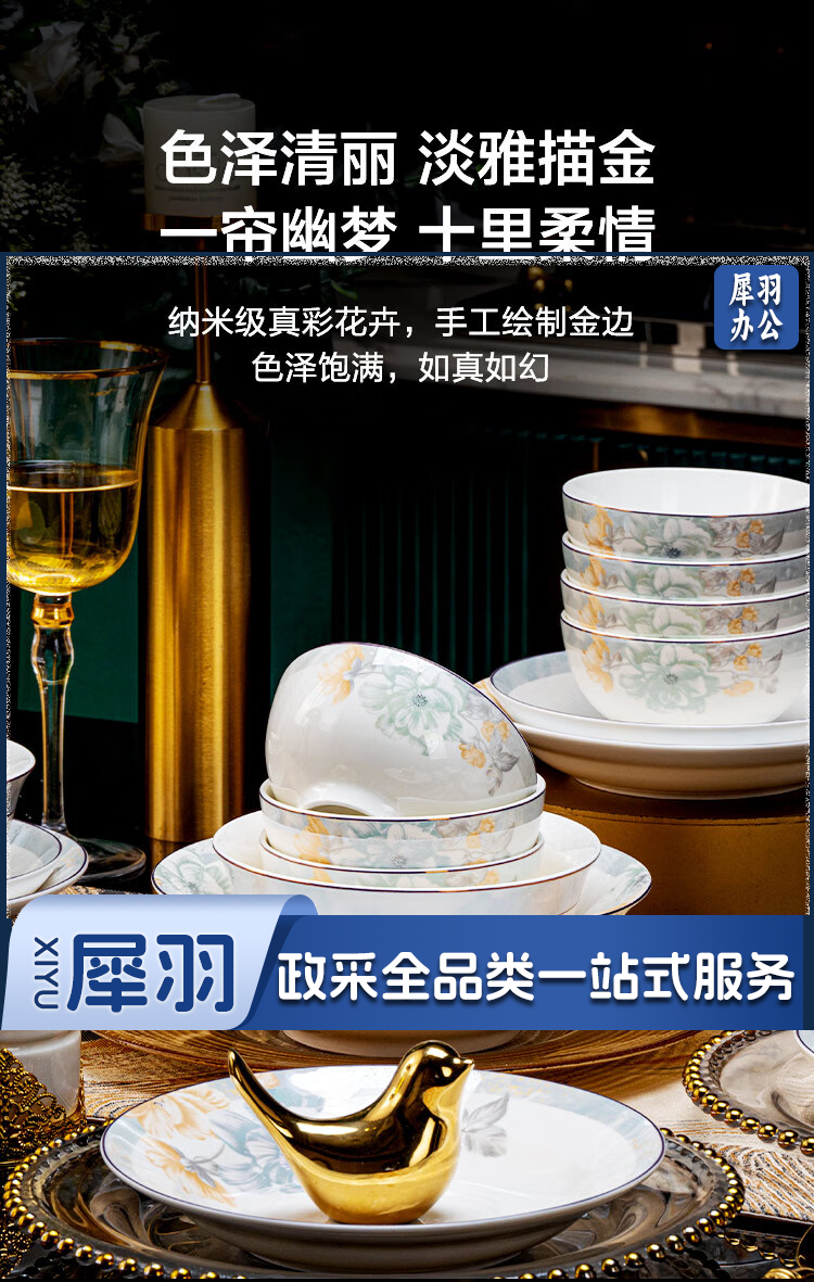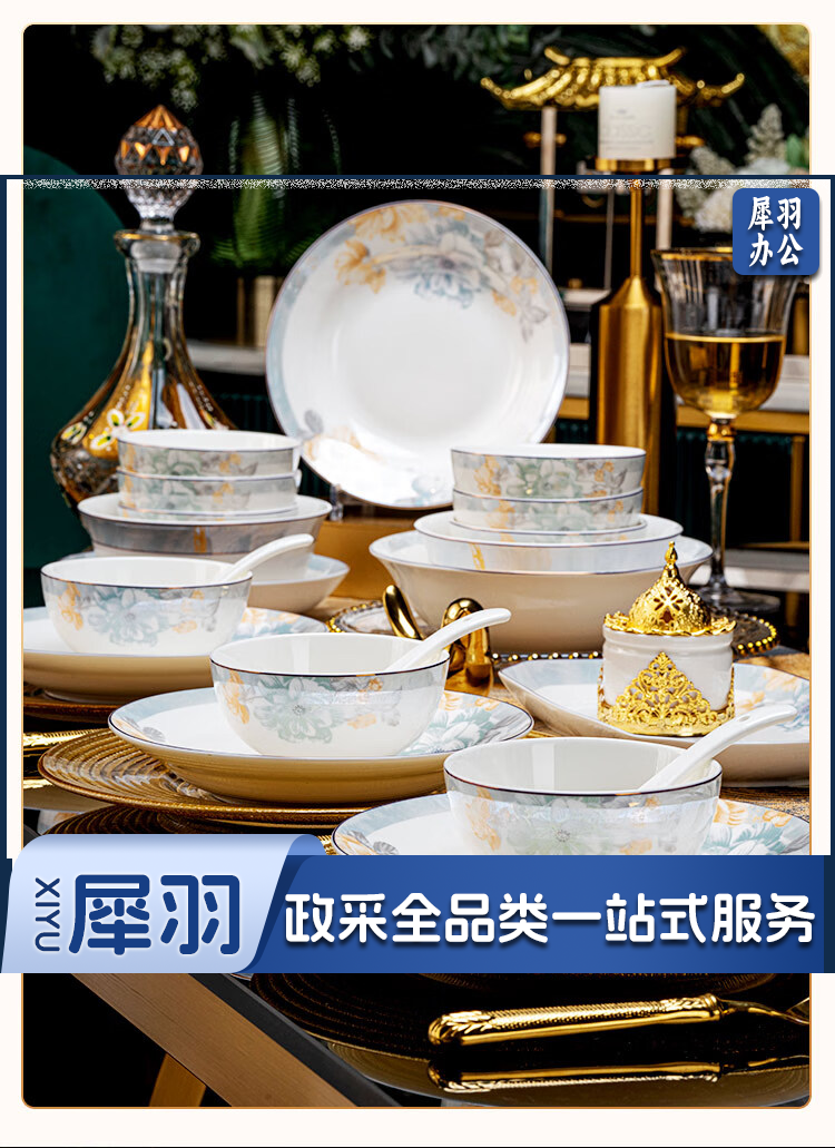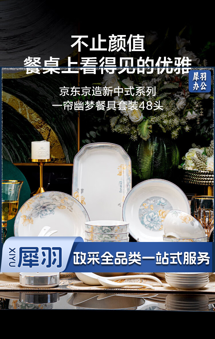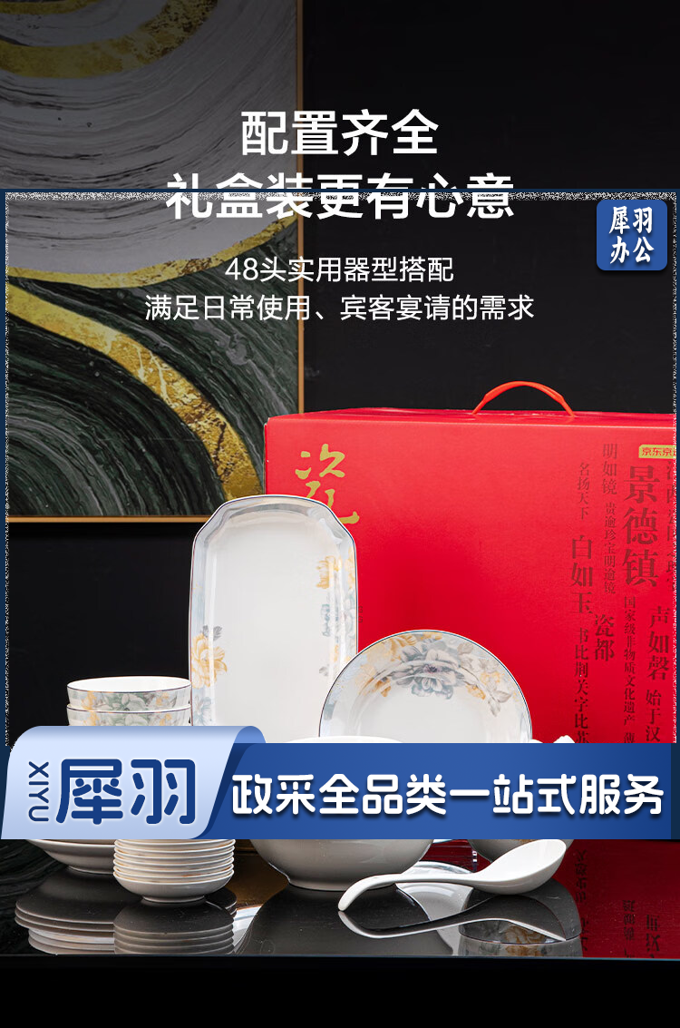 京东京造48头碗碟套装景德镇餐具套装礼盒装碗碟陶瓷碗碟送礼一帘幽梦