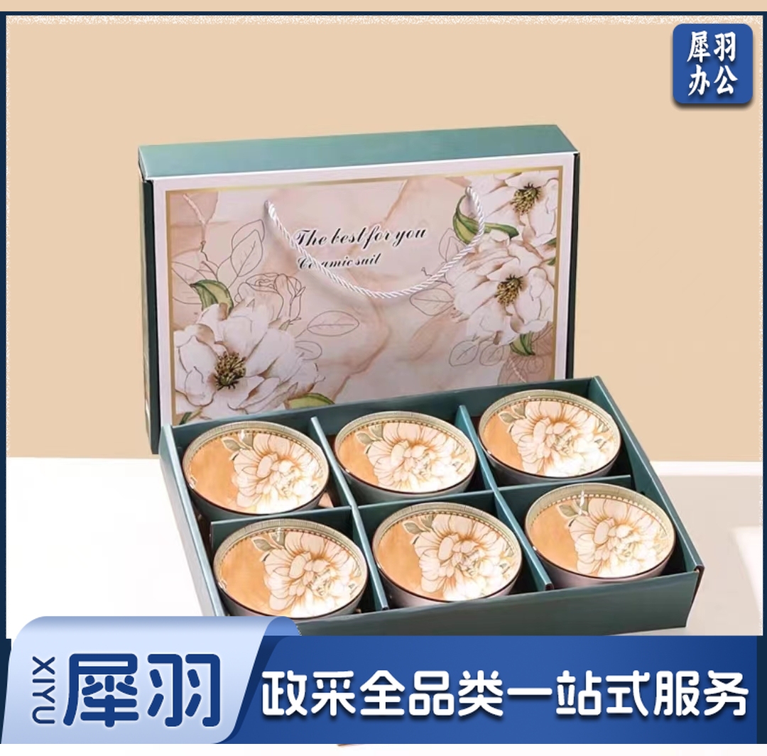 六碗六筷 山茶花碗筷套装陶瓷碗具礼盒伴手礼套碗礼品碗