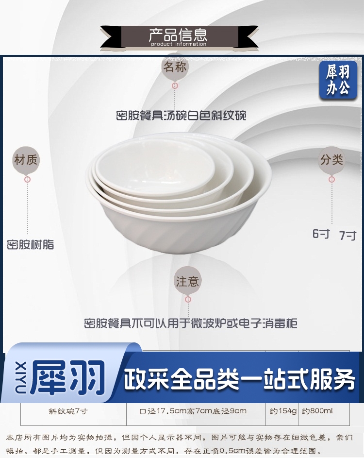 仿瓷碗密胺餐具碗汤碗饭碗粥碗塑料斜纹碗 100只/箱(7英寸 17.5*7cm) CF.060