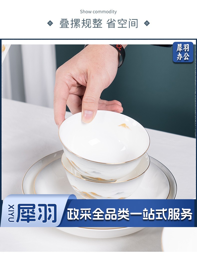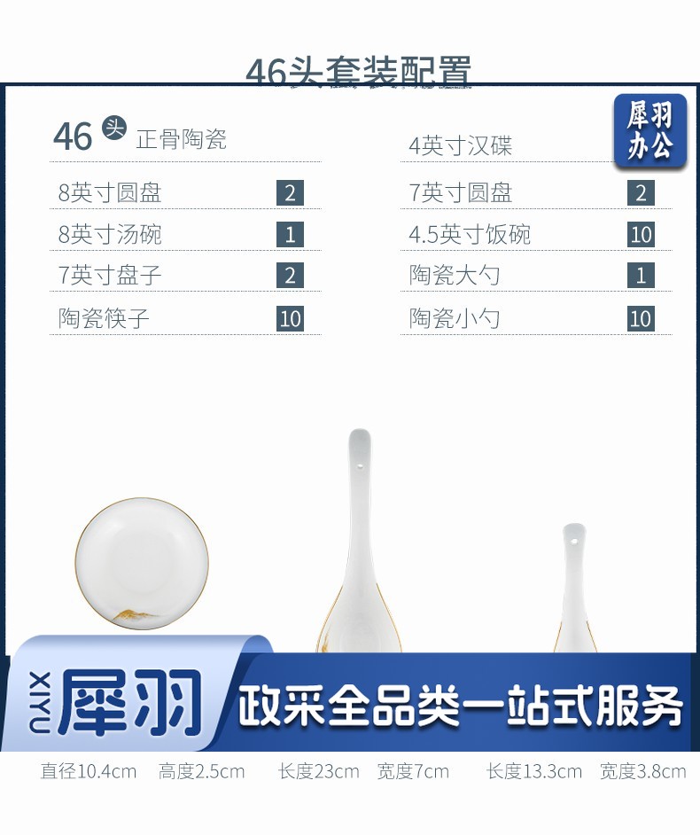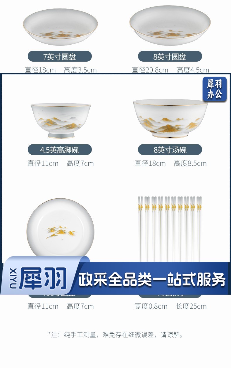 金山银山餐具套装家用陶瓷碗盘勺子套装46件