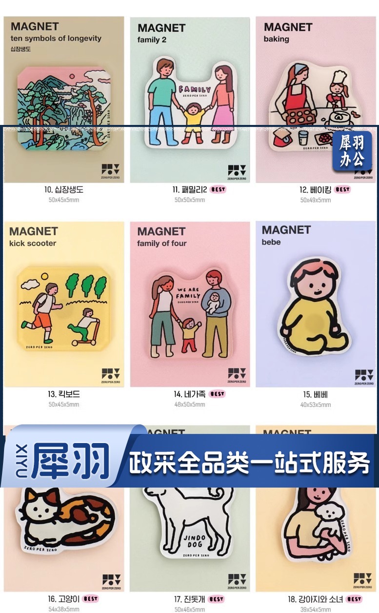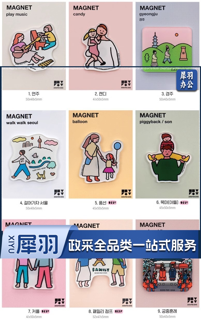 韩国zeroperzero家庭亲子插画冰箱贴亚克力磁性磁铁吸铁石照片贴