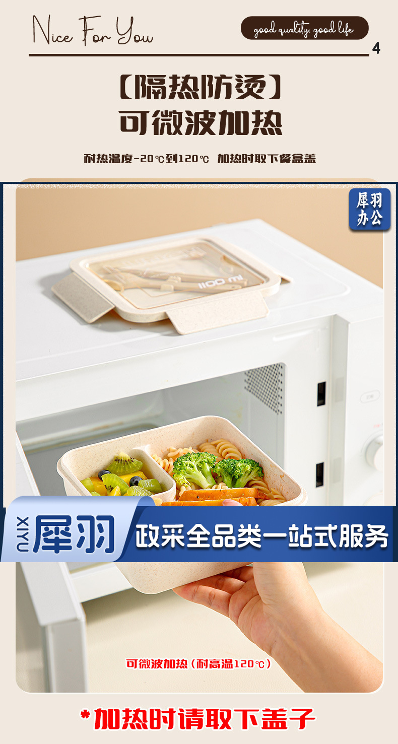 加热饭盒微波炉专用上班族水果便当盒带餐具分格餐盒(小麦汤杯)