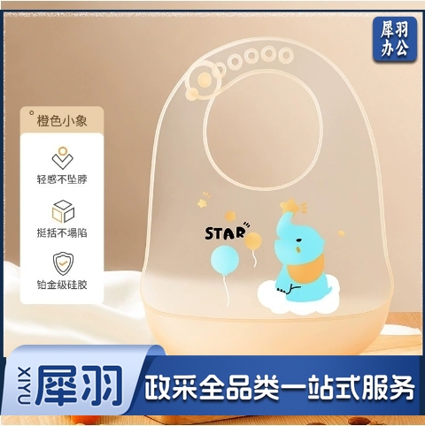 宝宝吃饭围兜防水硅胶饭兜儿童柔软喂辅食围嘴婴儿防脏喂饭口水兜(快乐小象)