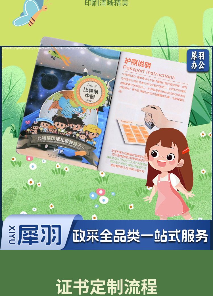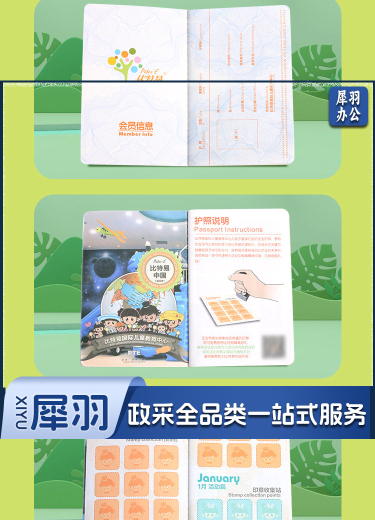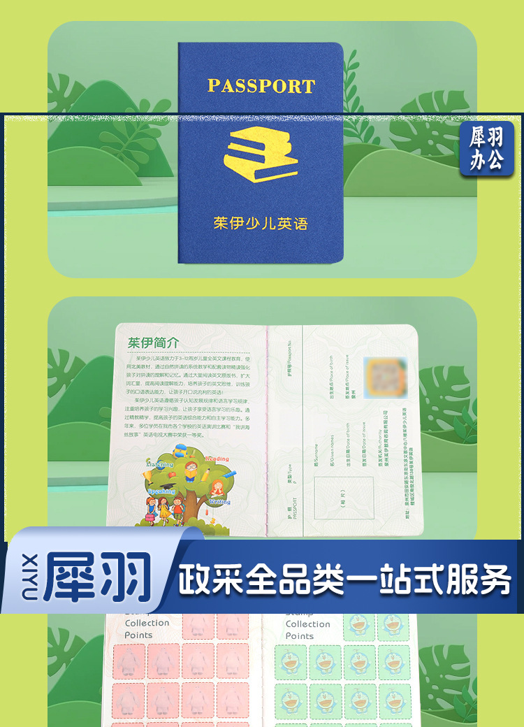 儿童护照早教培训幼儿园旅行积分收集盖章本荣誉英语会员证定制做(加单色LOGO 100本起)