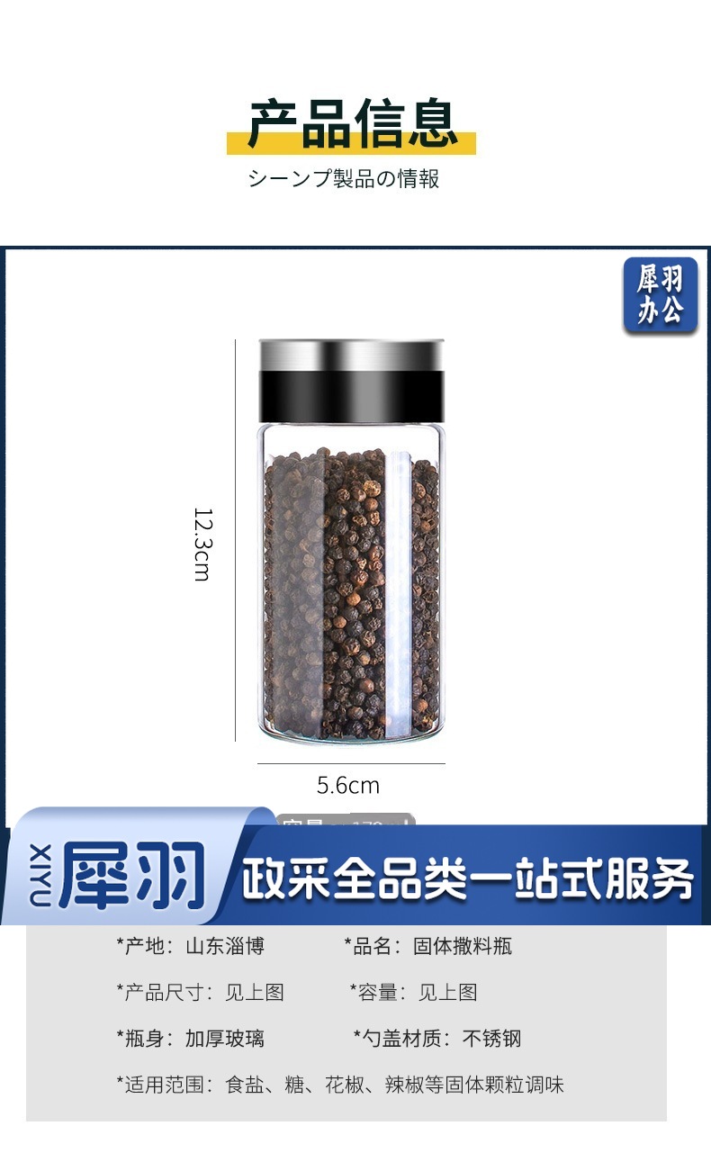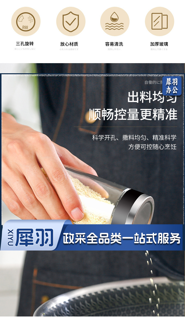 玻璃调料瓶烧烤撒料瓶旋转多孔盖密封调味瓶罐胡椒粉筒瓶厨房用品(170ml/纸箱插隔装)