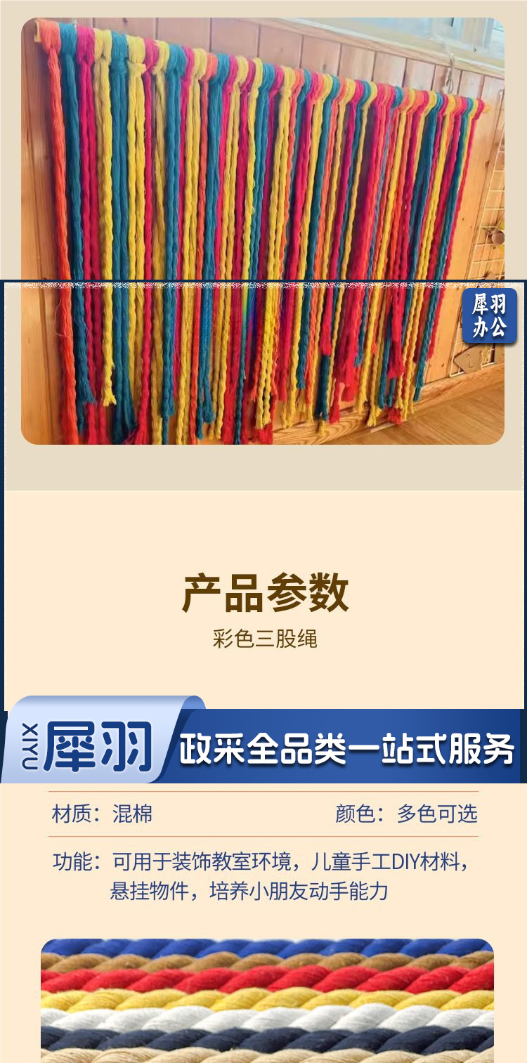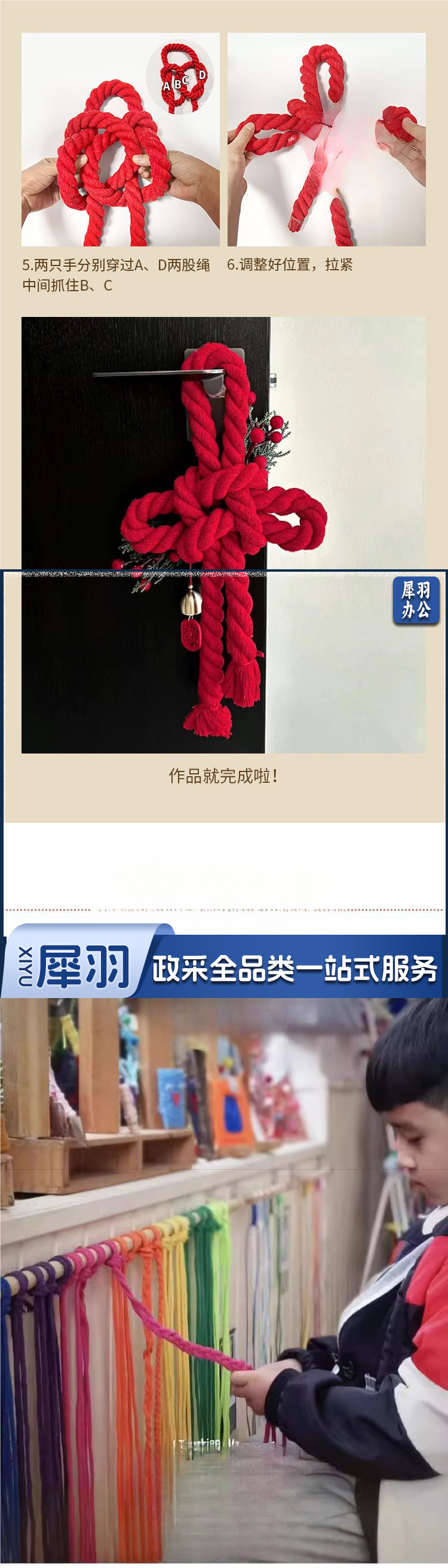 幼儿园操作美工编织区角域材料手工diy环创彩色绳装饰棉早教精细(编织绳粗2CM长2M颜色自选)
