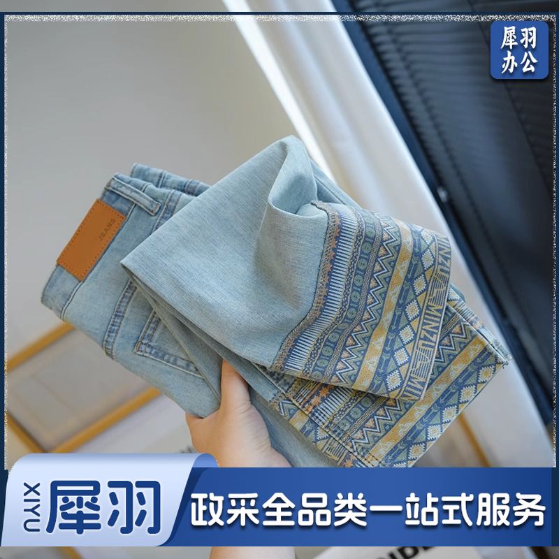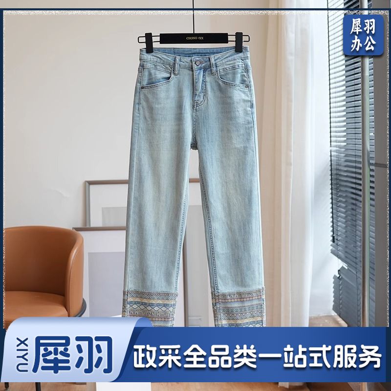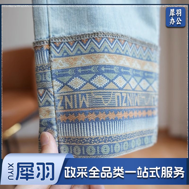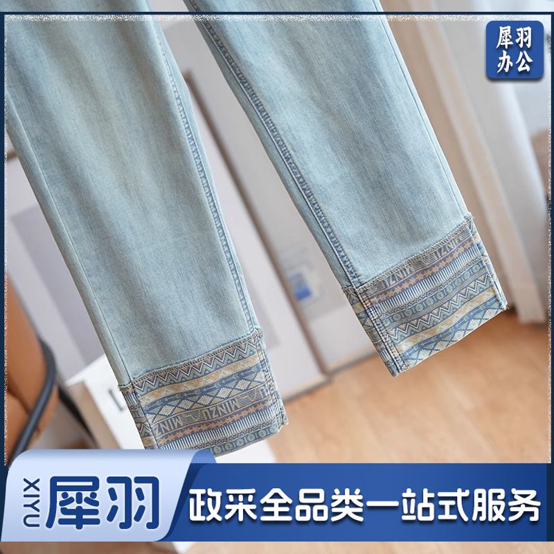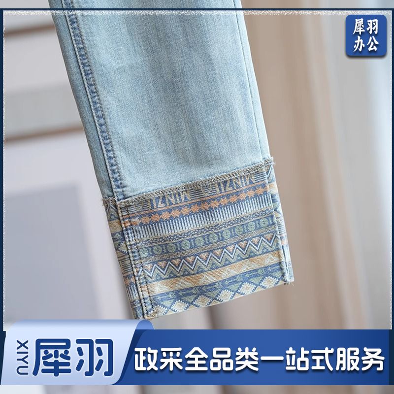 春季新款小众复古民族风拼接牛仔裤女百搭休闲修身显瘦九分直筒裤