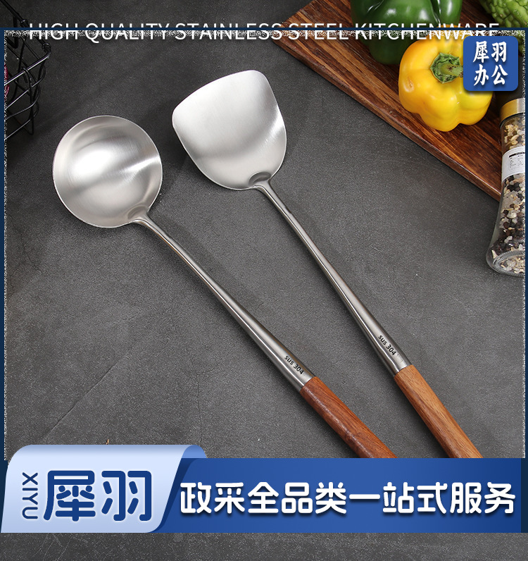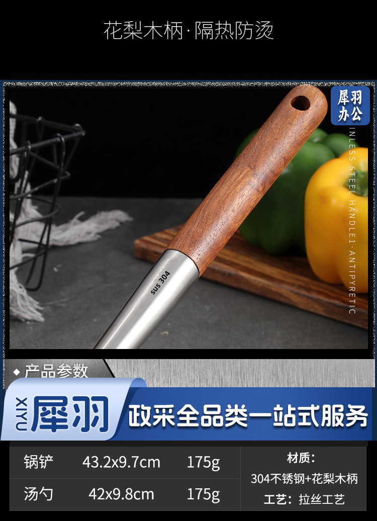 厨房长柄花梨木304锅铲用具家用木柄不锈钢厨具烹饪炒铲炒勺铲子(加长款304花梨木勺)