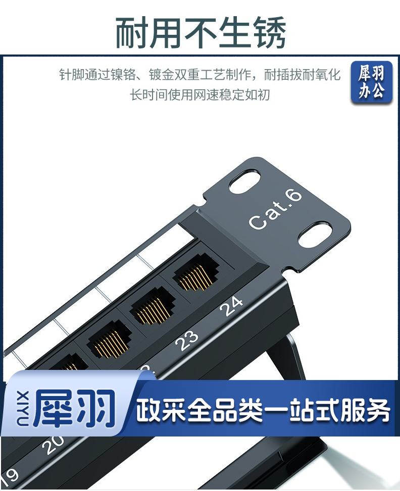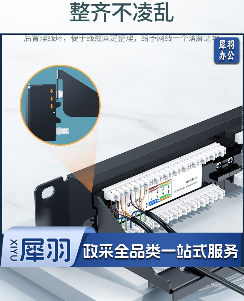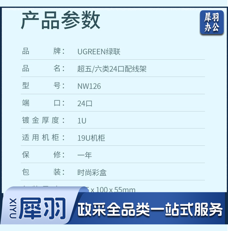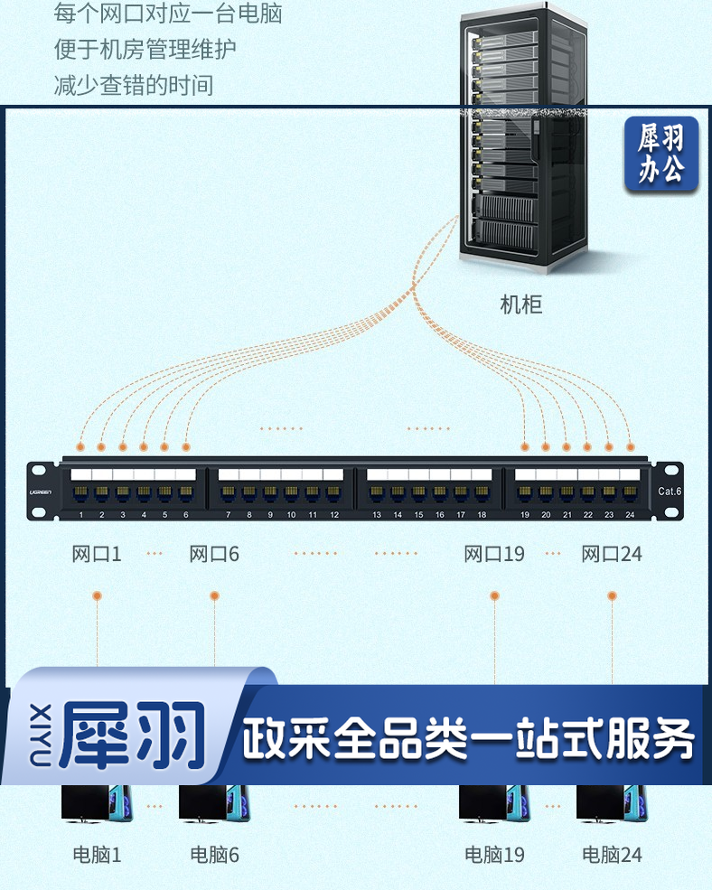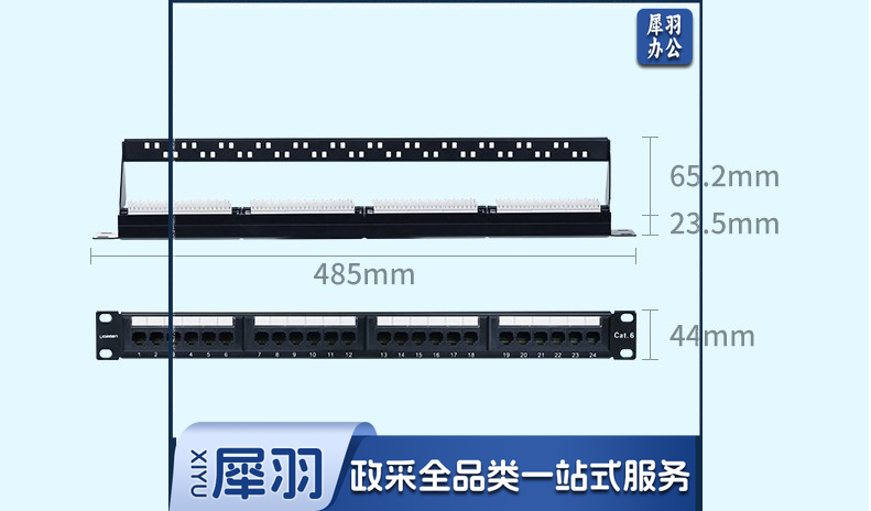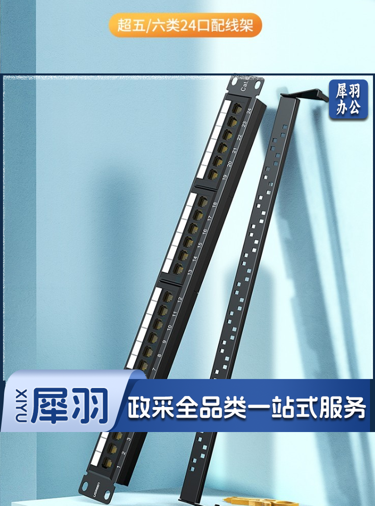绿联网络配线架24口1U金属机架六6类千兆cat5e超五类成品网线跳线水晶头模块 超五类UTP一体式配线架 1U 24口