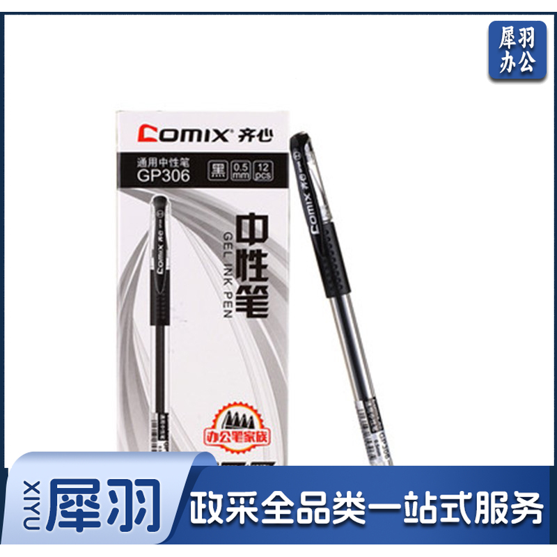齐心 GP306 通用中性笔 匹配笔芯R980 (黑一盒12支)