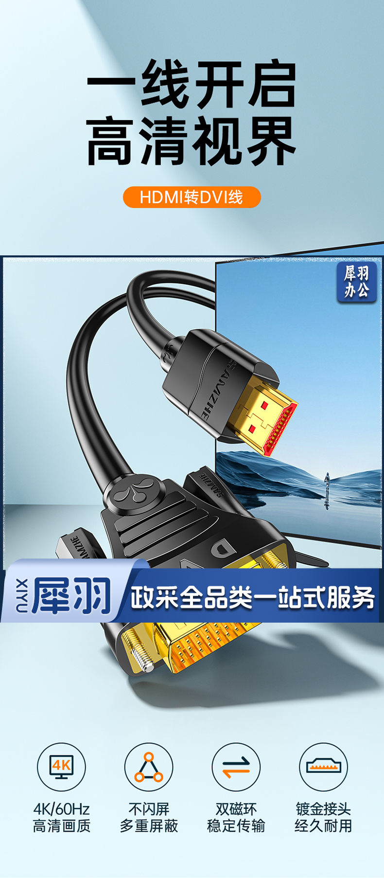 山泽(SAMZHE)HDMI转DVI连接线 DVI转HDMI转接头高清双向互转笔记本电脑投影仪显示器视频转换线 15米 DH-8200默认规格