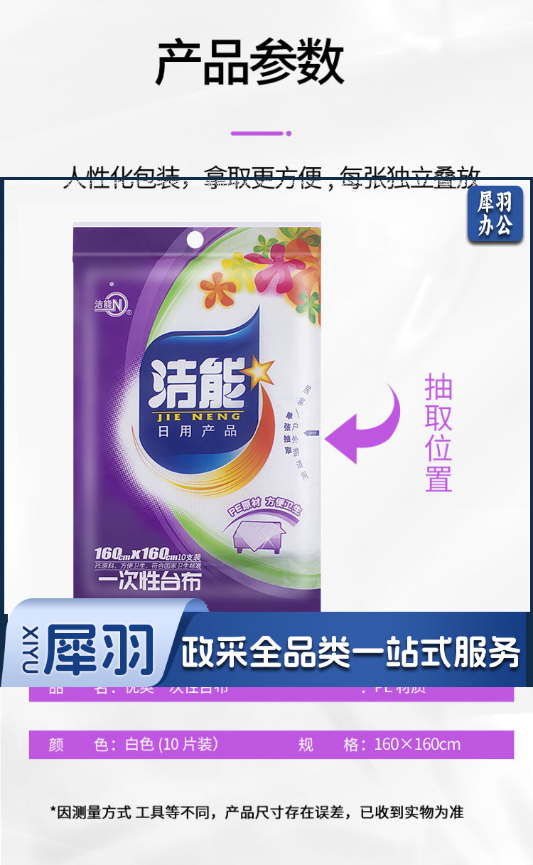 洁能 一次性桌布台布餐桌布塑料桌布30张160cm*160cm 野餐野营餐桌适用