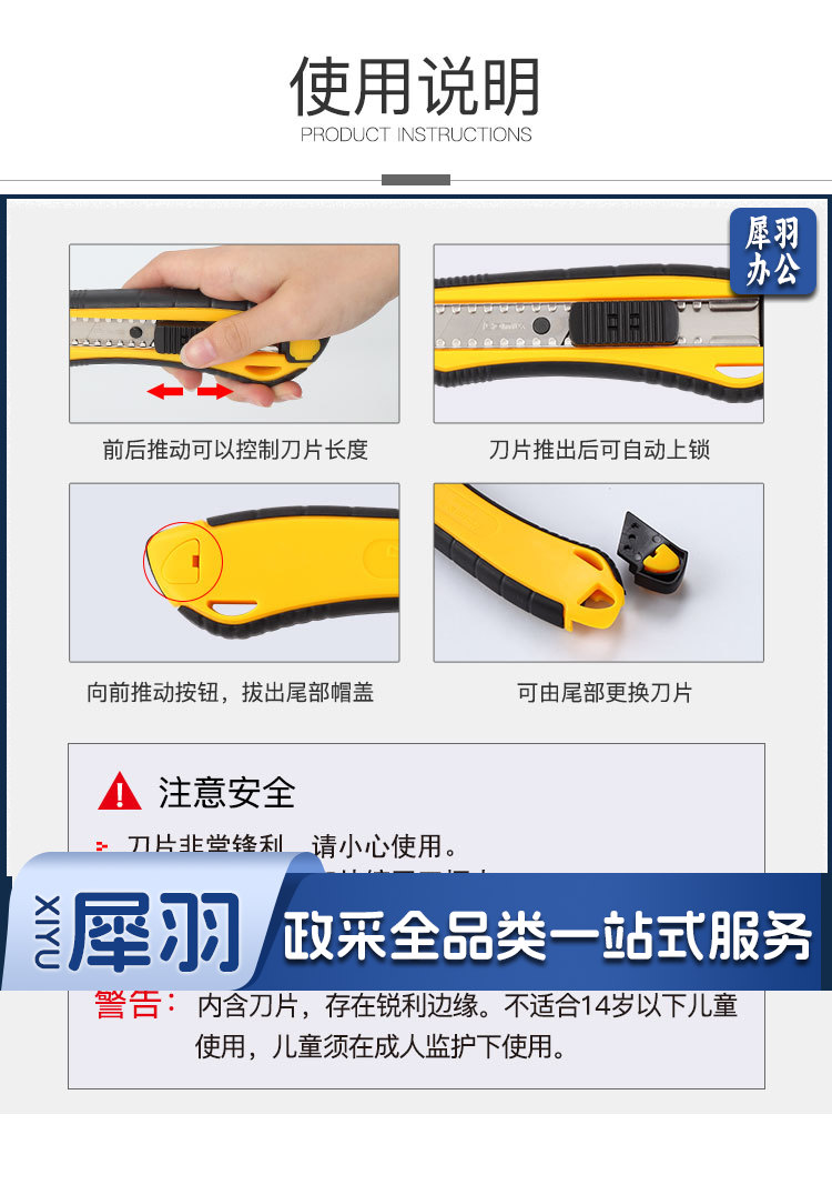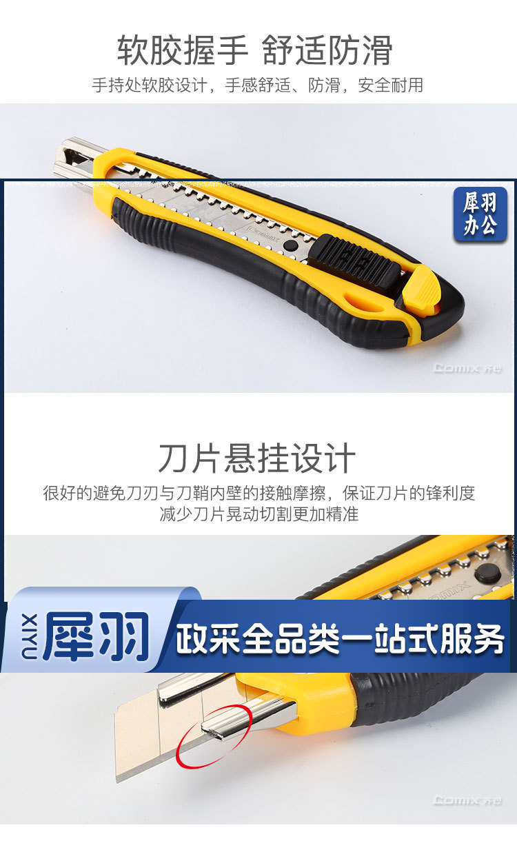 1100203715EA 齐心 B2834 美工刀 170*43*25mm 混色 12把/盒