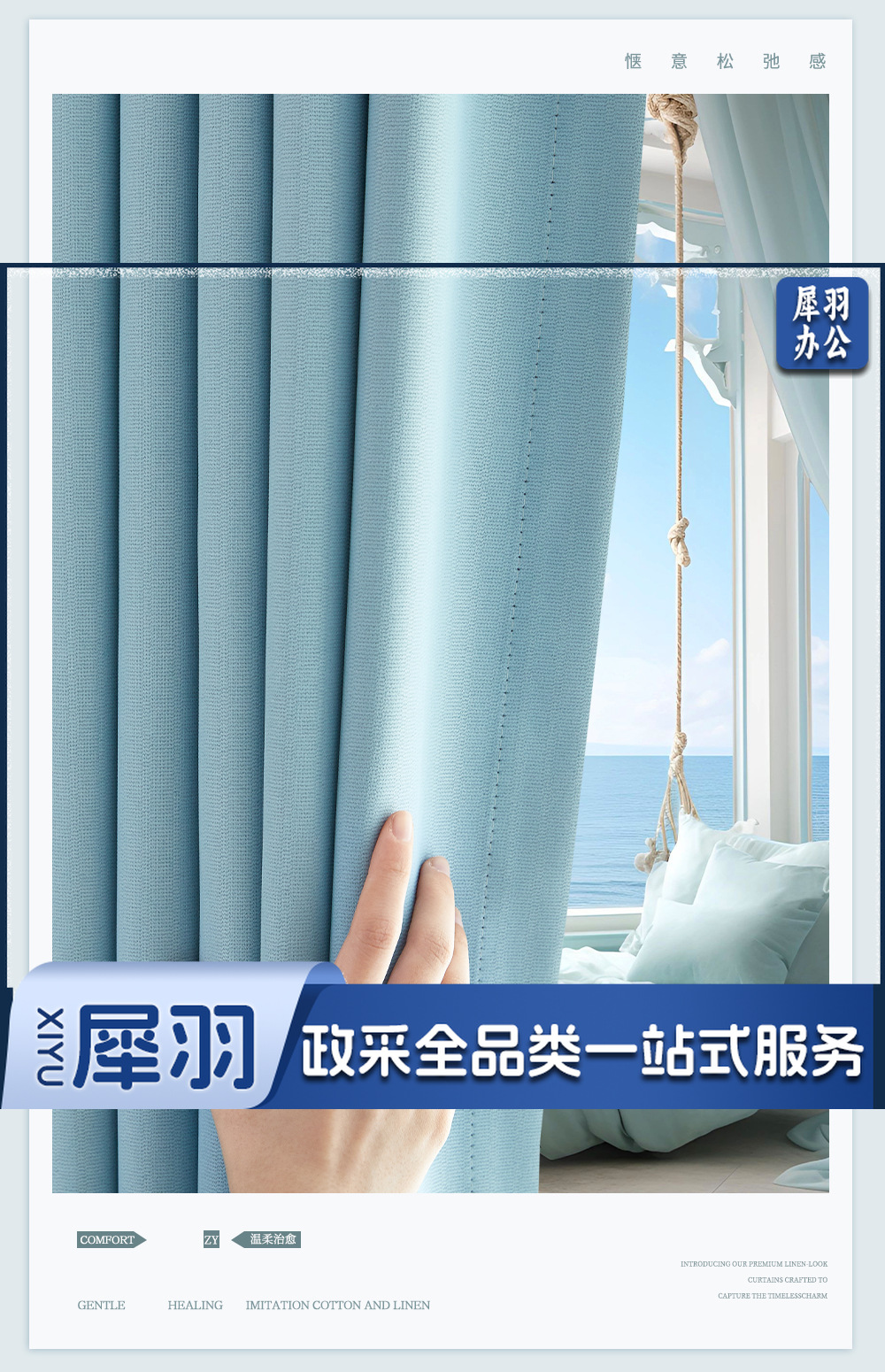 教室遮阳窗帘90%遮光窗帘遮光窗帘双面同色棉麻(雾霾蓝)定制详情联系客服