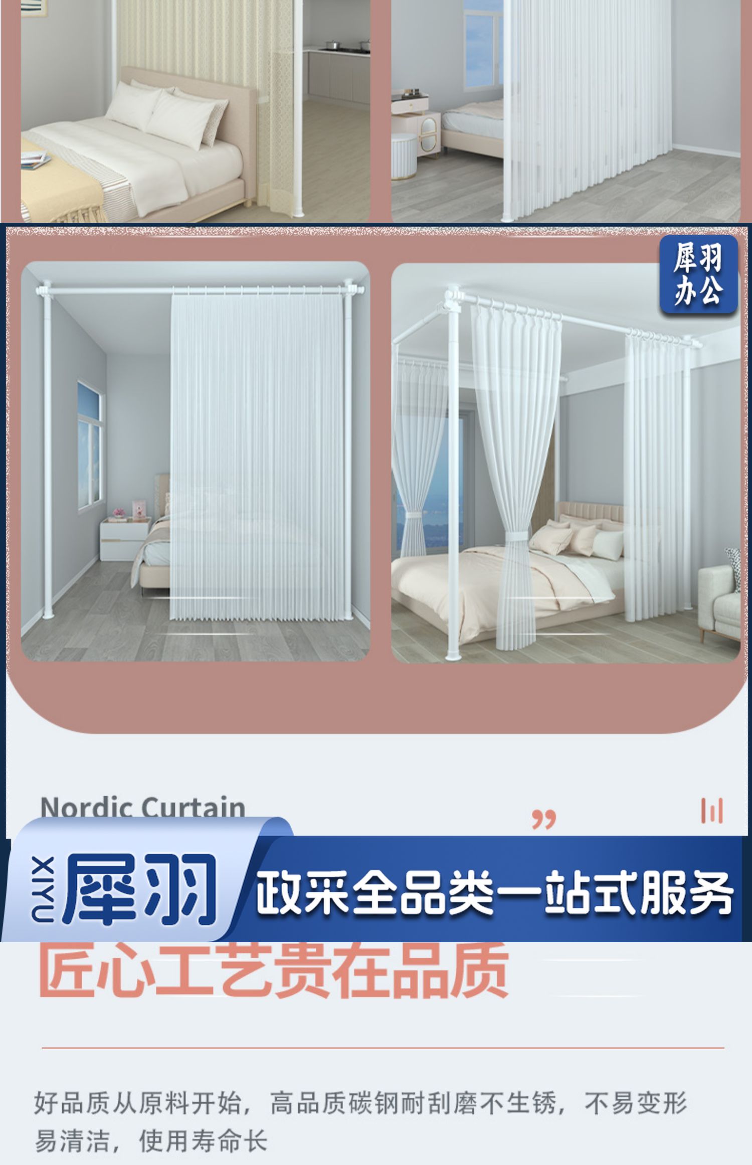 床帘窗帘帘子遮帘顶天立地隔断客厅屏风做房间板墙简易自装遮挡卧室折叠移动分(U型1.6-2.1米*2.1-2.6米*2.1-2.6米 纱帘)