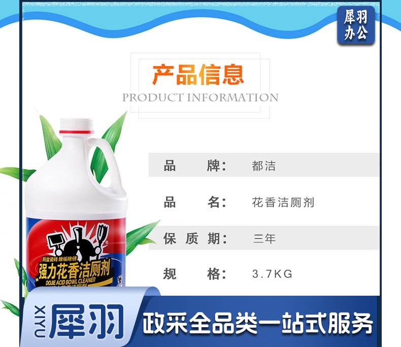 都洁 强力花香洁厕剂3.7kg大桶装 洁厕液洁厕灵大桶装马桶厕所清洁剂供应酒店单位餐厅 1箱(4桶)
