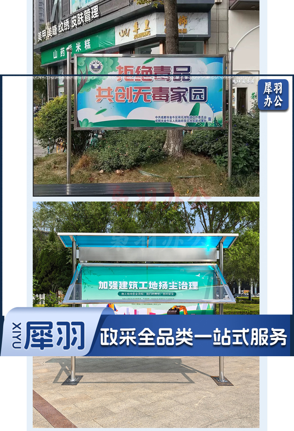 广告栏广告牌标识牌户外街道河道公园提示警示广告牌 校园文化长廊小品不锈钢宣传栏(现货+楣板+雨棚)