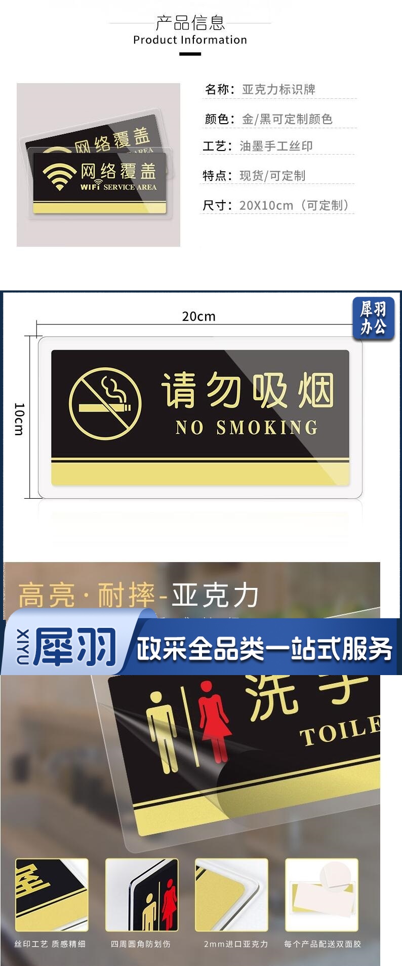 亚克力男女洗手间自粘指示牌导向卫生间标识牌厕所门牌指示牌温馨提示牌20X10cm 男女洗手间 货号:GD