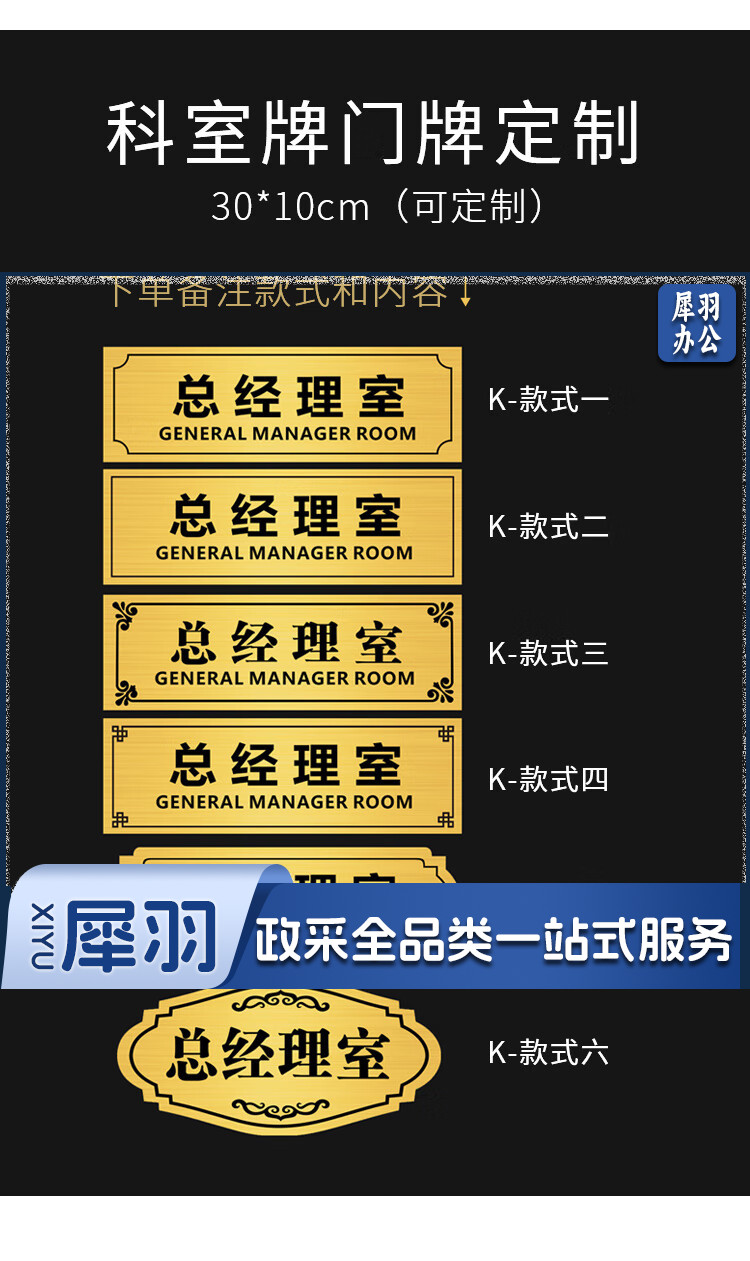 门牌科室牌办公室公司指示牌部门标牌定制 K-款式一30*10cm(备注内容)HKL-517 (10个起订)