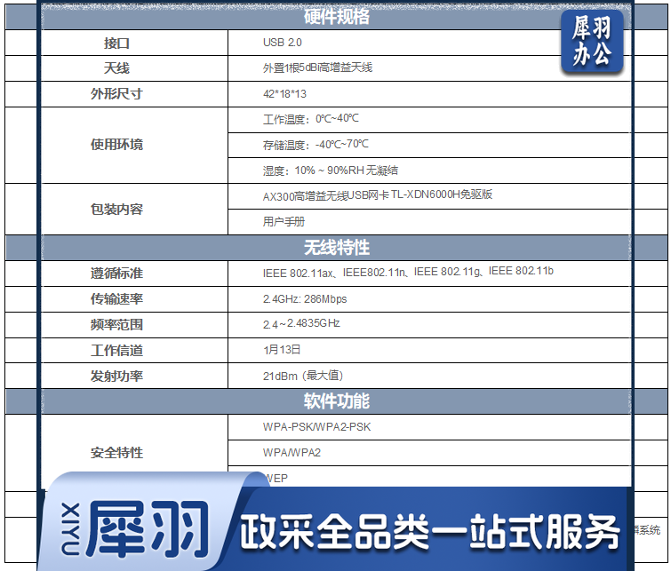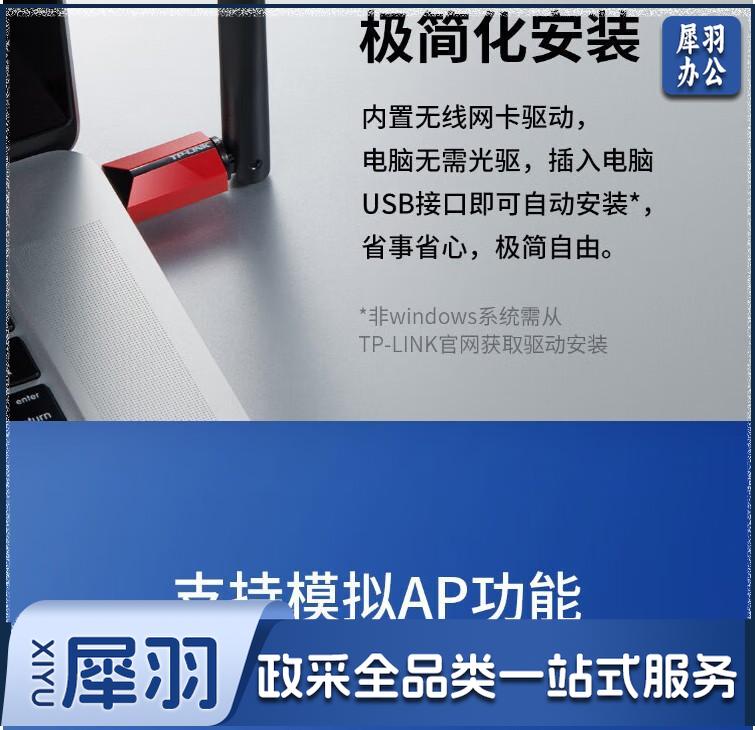 TP-LINK WiFi6免驱 usb无线网卡 外置高增益天线 台式电脑wifi接收器 AX300随身发射器 XDN6000H(单位:个)