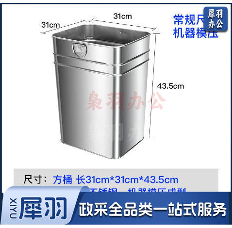 户外垃圾桶内胆果皮箱内桶小烟灰缸(不锈钢方桶31*31*43.5cm)加厚镀锌板不锈钢铁皮圆桶方形收纳