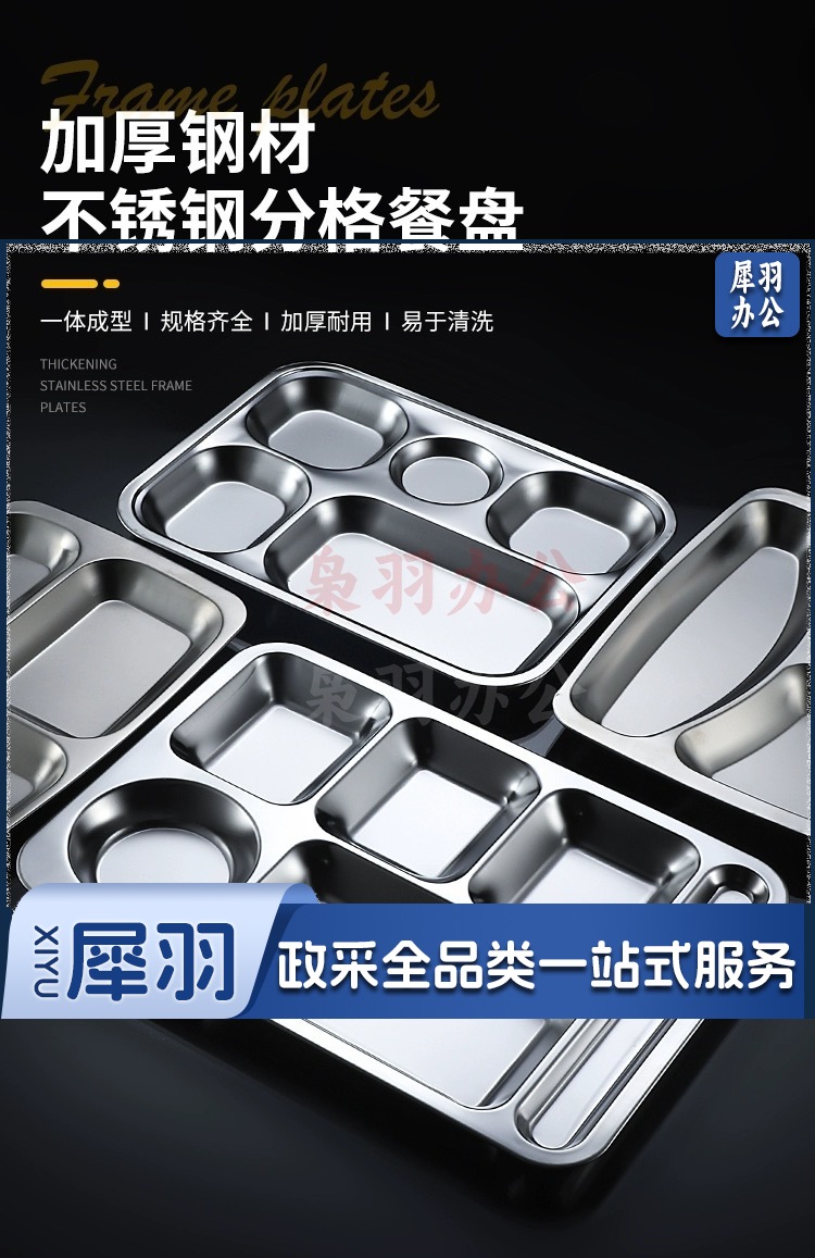 304加厚不锈钢快餐盘分格餐盘(5格小圆(带勺位)1.0厚 长35.5cmx宽26.7cmx高2.3cm)儿童幼儿园学生成人食堂快餐盘餐具