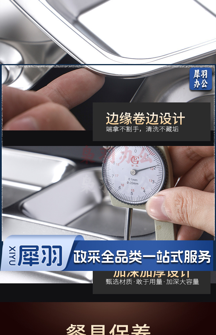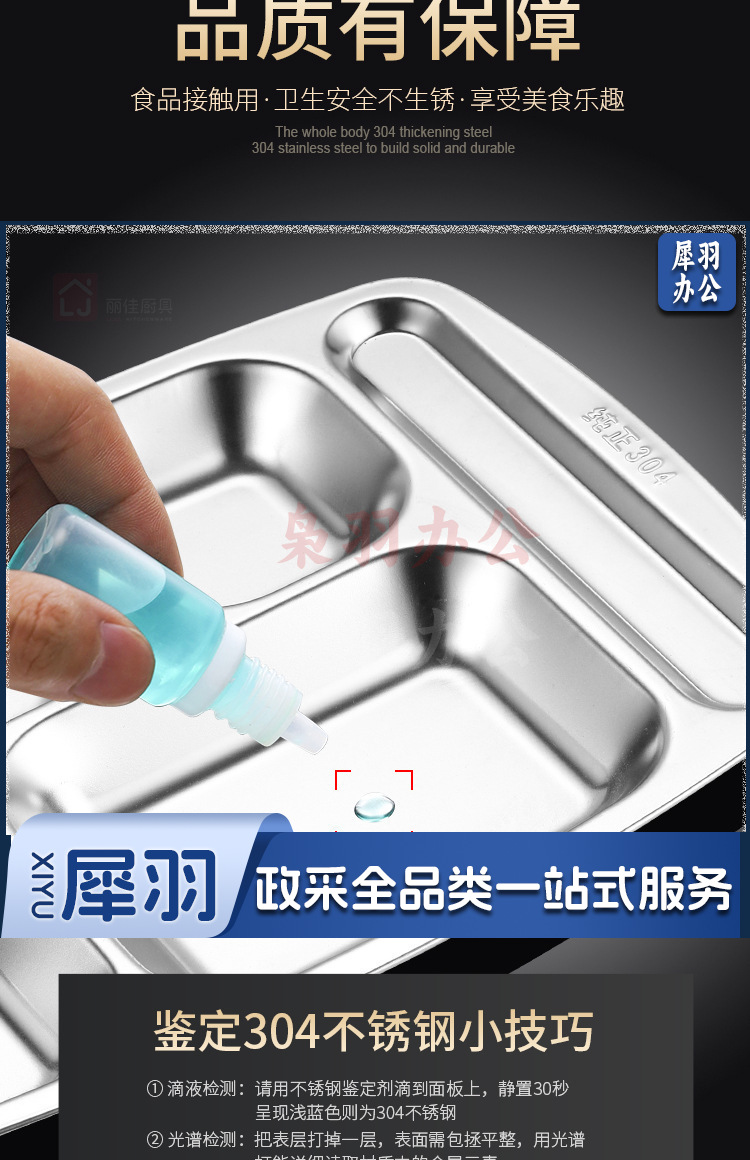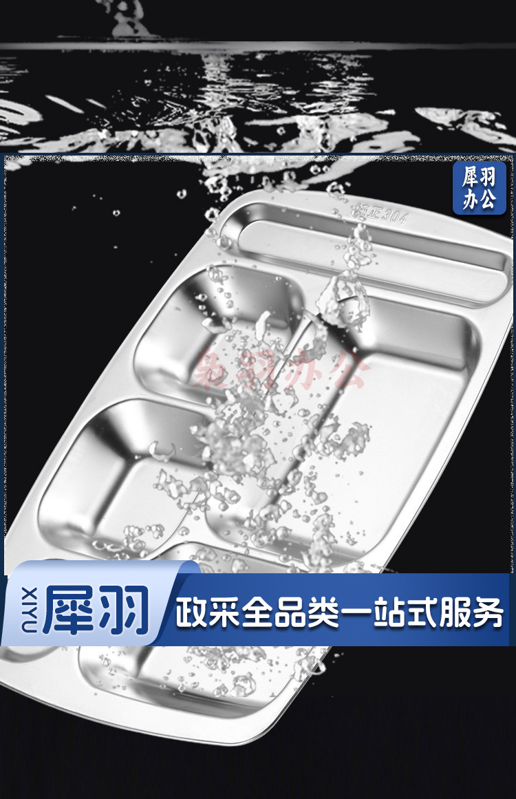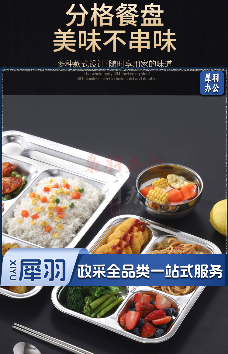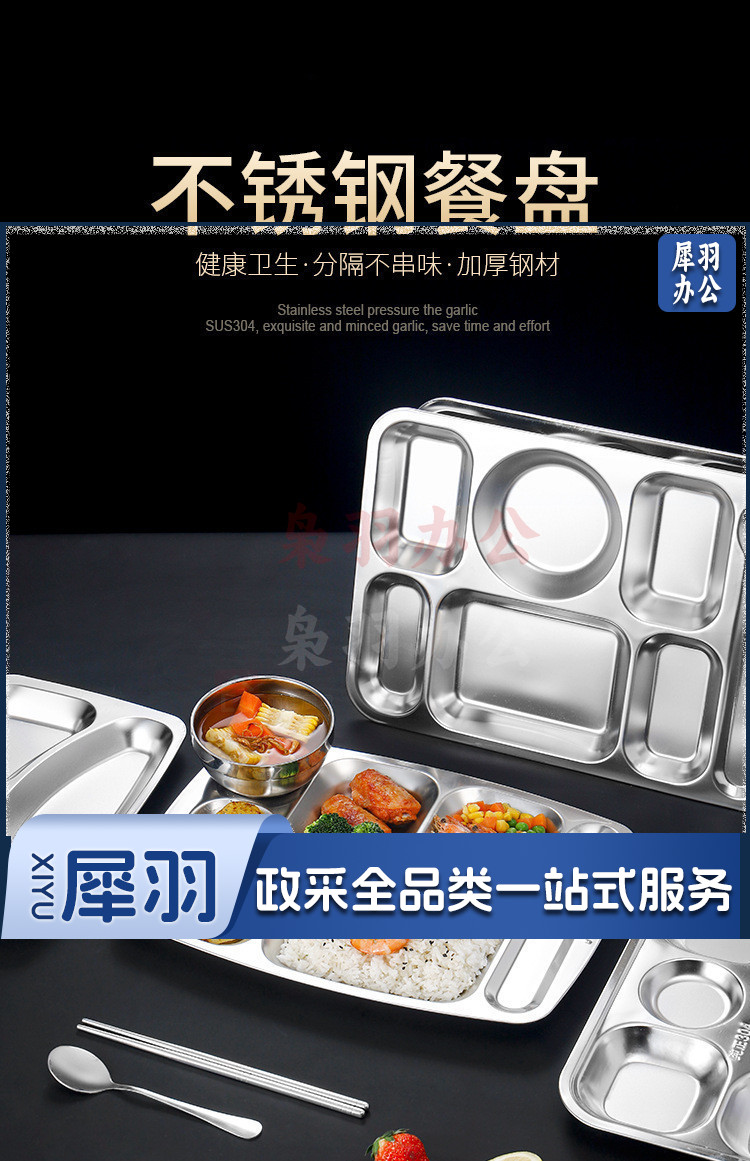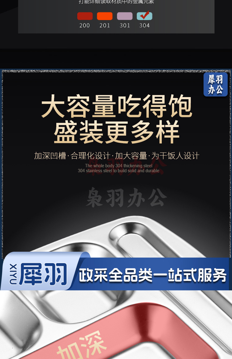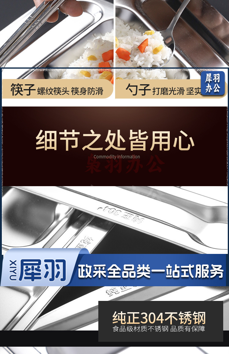 304食堂分餐盘食品级(304大五格餐盘+碗+筷+勺)学生分格碗筷勺套装盘子加厚不锈钢餐具