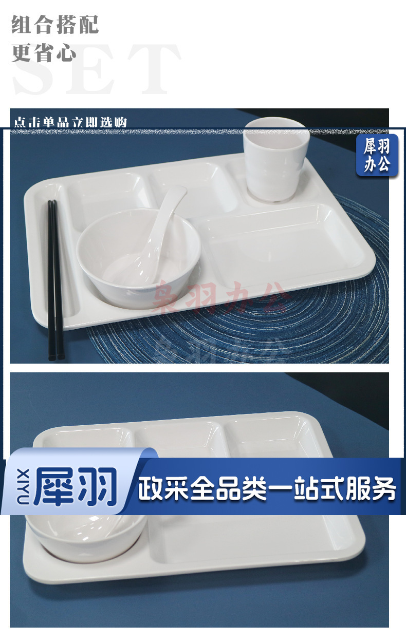 A5白色密胺餐具快餐盘(套装-10.5寸四格餐盘)学生食堂分格餐盘四格六格盘碗碟盘套装