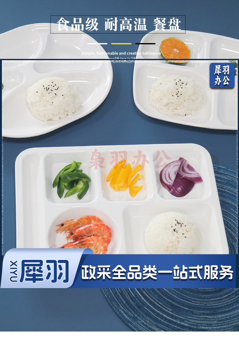 A5白色密胺餐具快餐盘(套装-10寸三格餐盘)学生食堂分格餐盘四格六格盘碗碟盘套装
