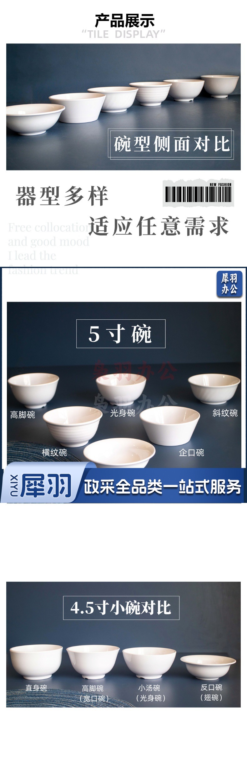 白色小碗食品级密胺碗( 5寸反口碗-耐高温)商用调料碗米饭碗汤碗食堂专用早餐碗
