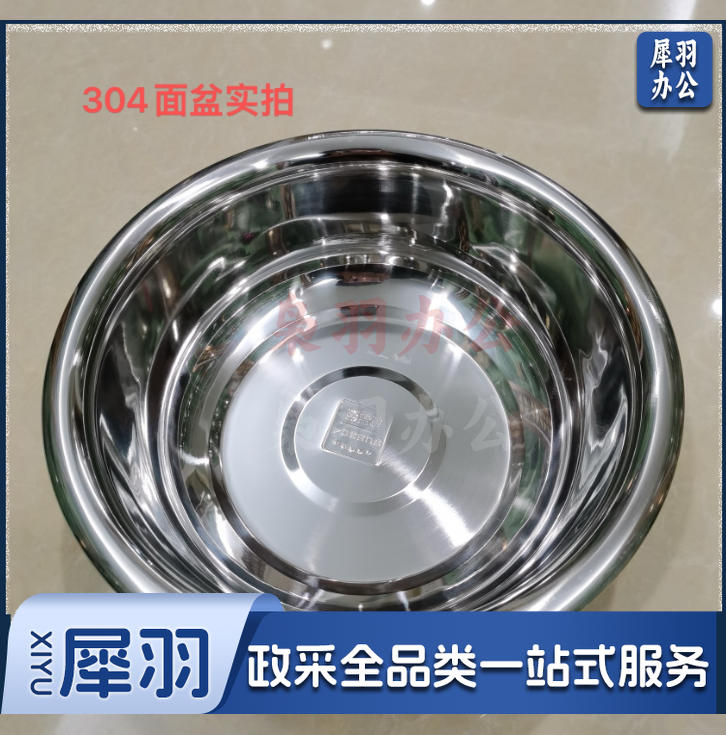 不锈钢盆(34cm面盆304材质)加厚不锈钢碗汤盆和面盆打蛋盆汤盆