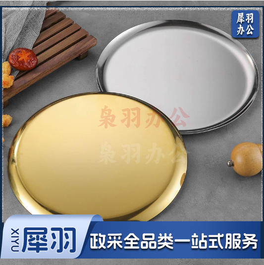加厚不锈钢圆盘托盘家用圆形托盘骨碟金色(直边镜面圆托盘28cm(金色))