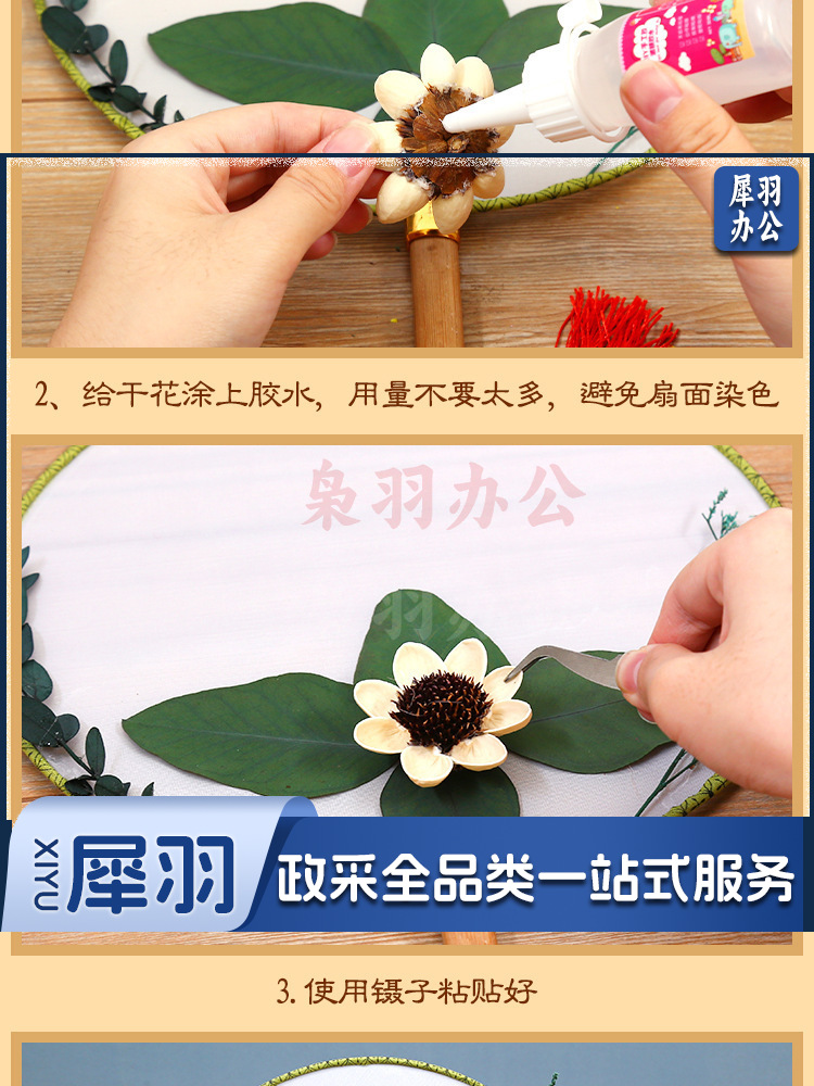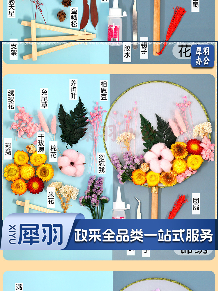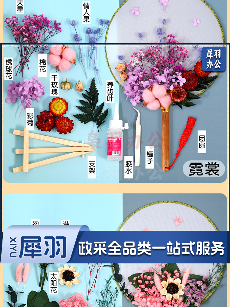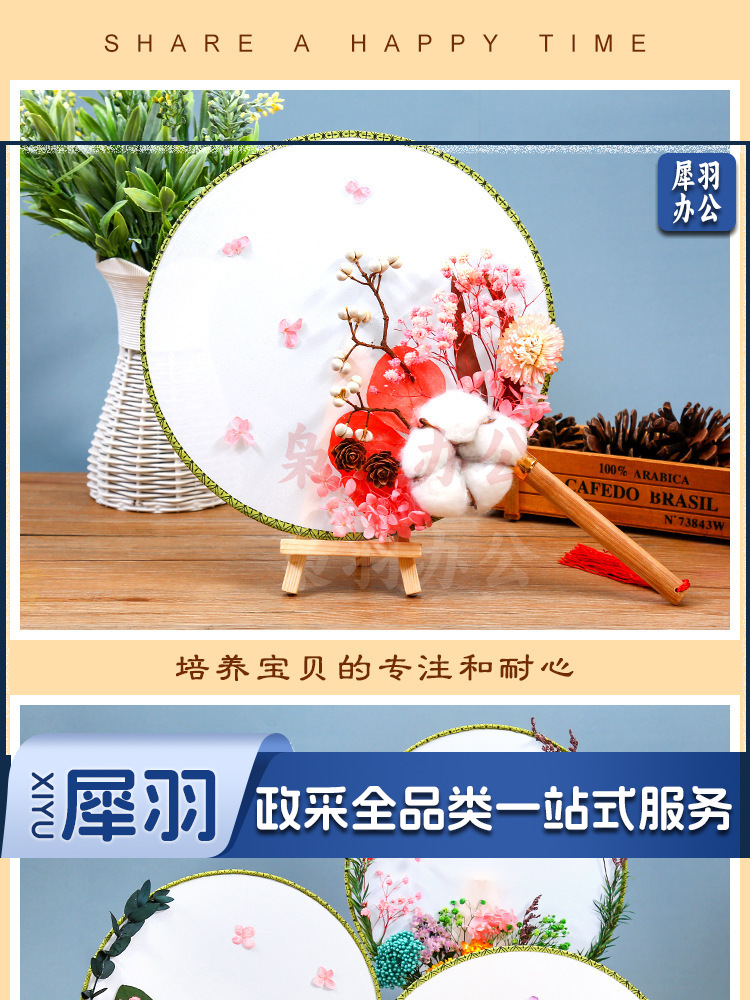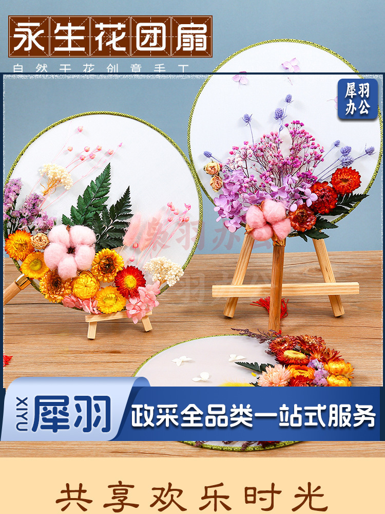 三八女神手工团扇diy材料包干花永生花古风空白宫扇长柄扇子团建(豪华版(盒装干花材料包)