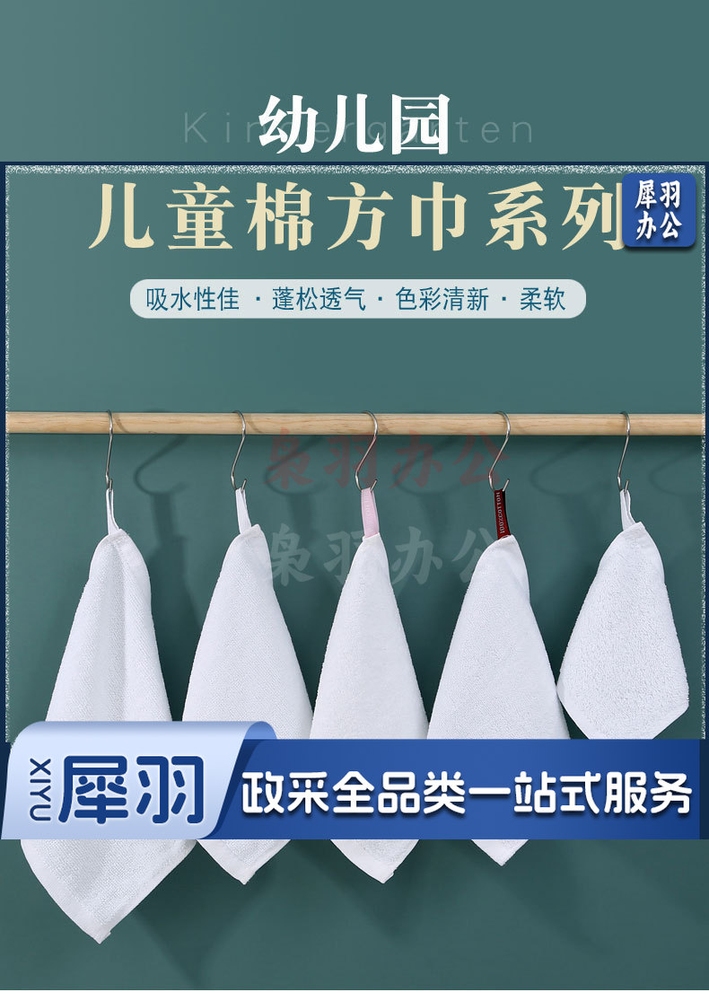 幼儿园专用擦嘴儿童方巾纯棉带挂绳全棉吸水擦手擦脸毛巾纯色加厚(尺寸齐全)中间挂绳