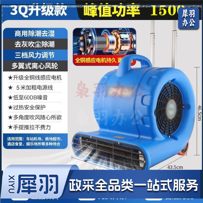 吹地机地面吹干机商用大功率厕所地板强力除湿吹风机地毯烘干器1500W商用款【极速吹干++拉杆带轮+支撑架】三档变频