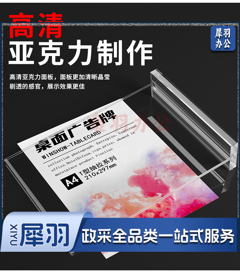 台卡亚克力台卡A 4桌牌A5立牌抽拉强磁台签展示牌桌卡个性创意( T型抽拉式【竖款】100x200mm 100x200mm)