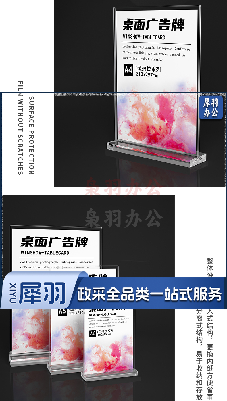 台卡亚克力台卡A 4桌牌A5立牌抽拉强磁台签展示牌桌卡个性创意( T型抽拉式A5竖款 150*210mm)