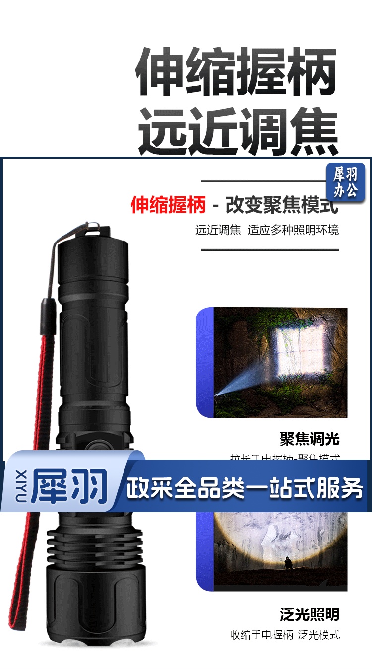 康铭强光手电筒变焦超亮远射SOS救援充电式探照灯应急户外家用KM-T62