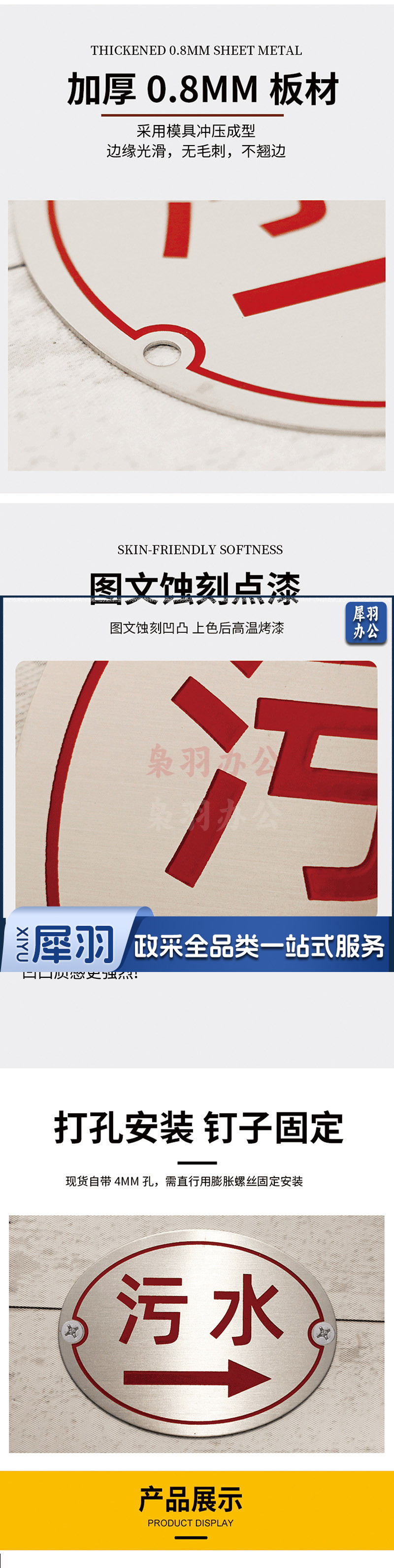 污水雨水不锈钢走向标志牌(8cm圆形走向牌)化粪池隔油池地面标识牌