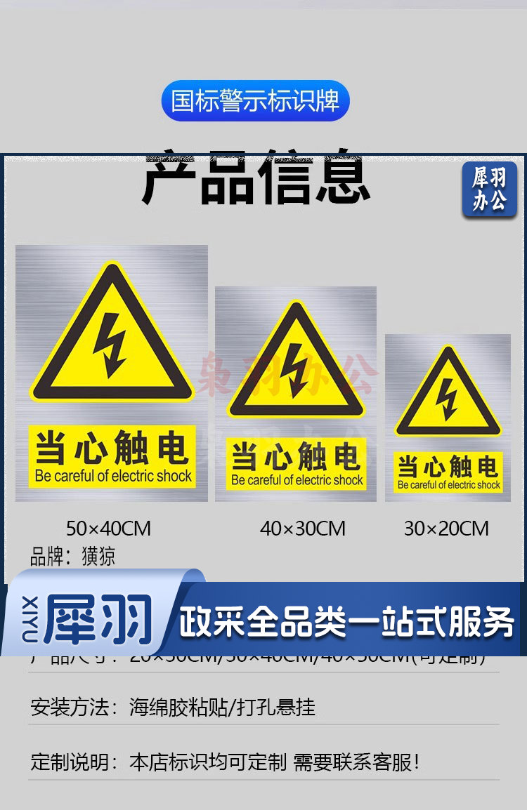 铝制安全警示标识牌(20x30cm)定制工厂车间施工标语标牌交通警告指示提示牌