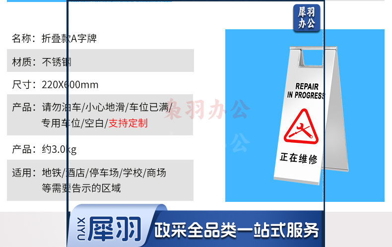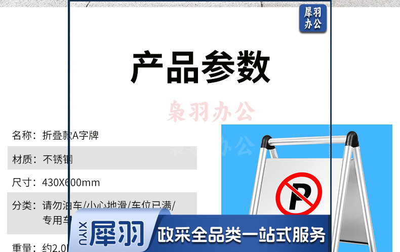 不锈钢禁止停车警示牌请勿泊车告示牌专用车位小心地滑a字警示牌( 304不锈钢一体)