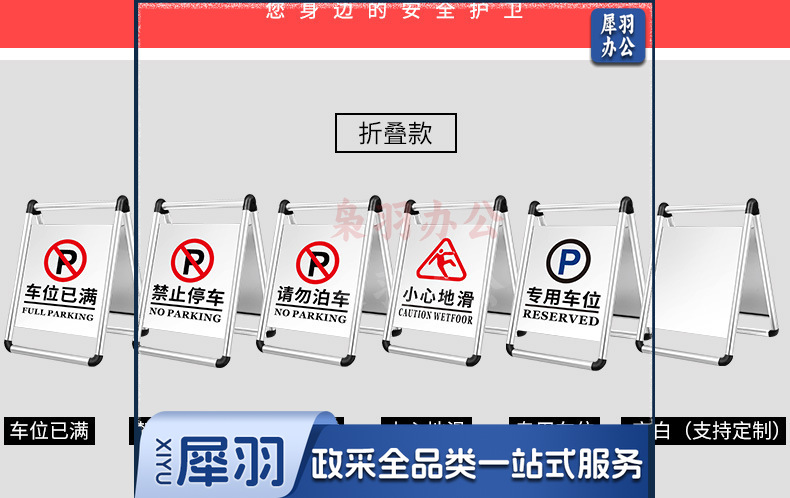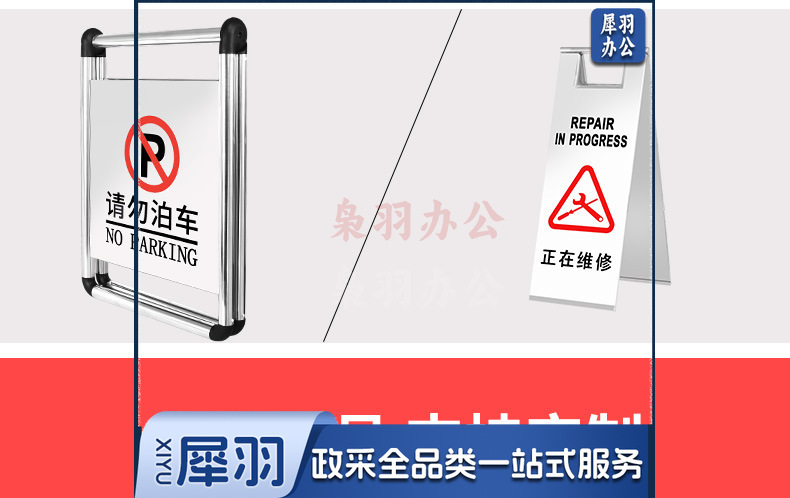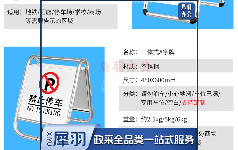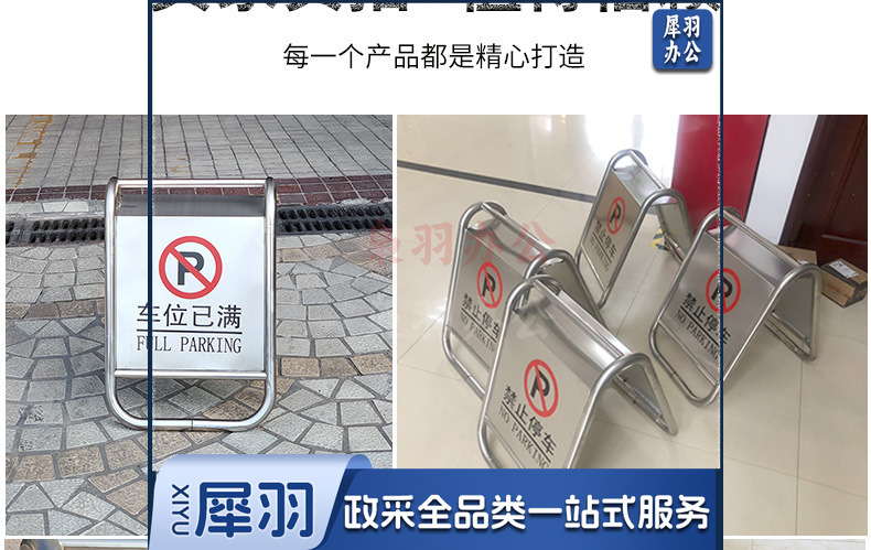 不锈钢禁止停车警示牌请勿泊车告示牌专用车位小心地滑a字警示牌(轻款2.2kg一体)
