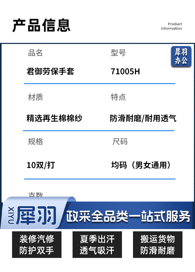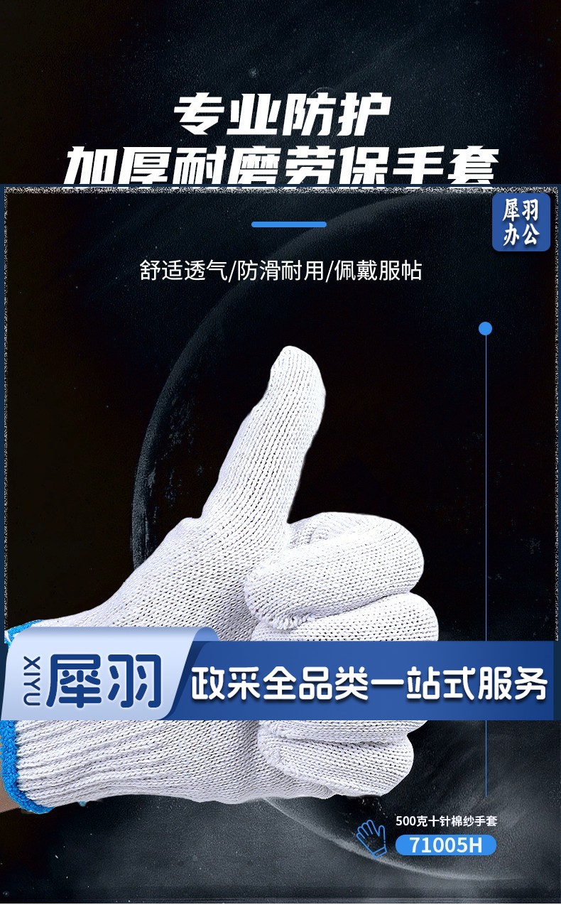 线手套71004H十针加密加厚棉纱手套400克、500克耐磨劳保手套