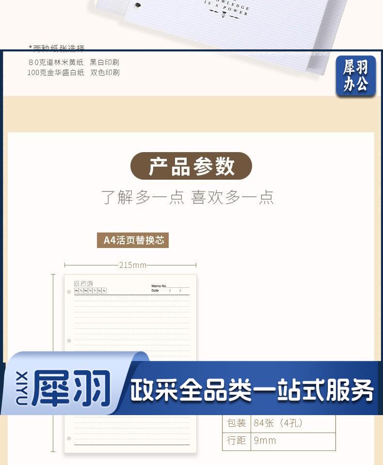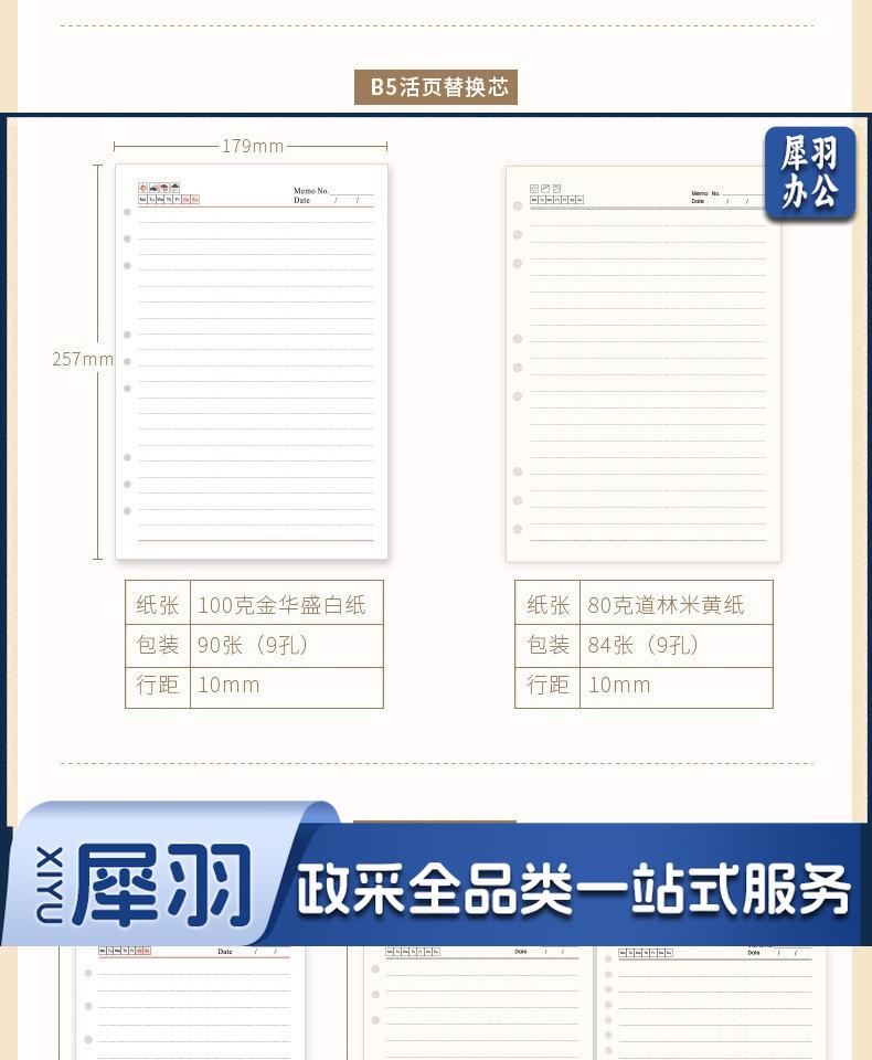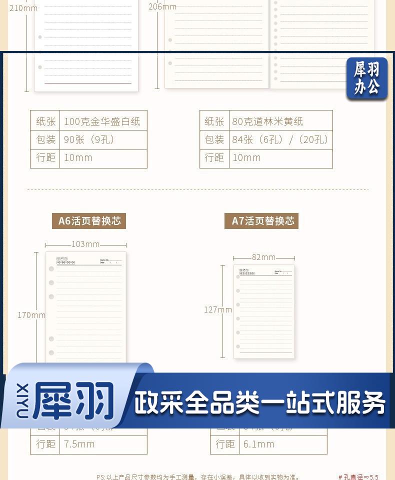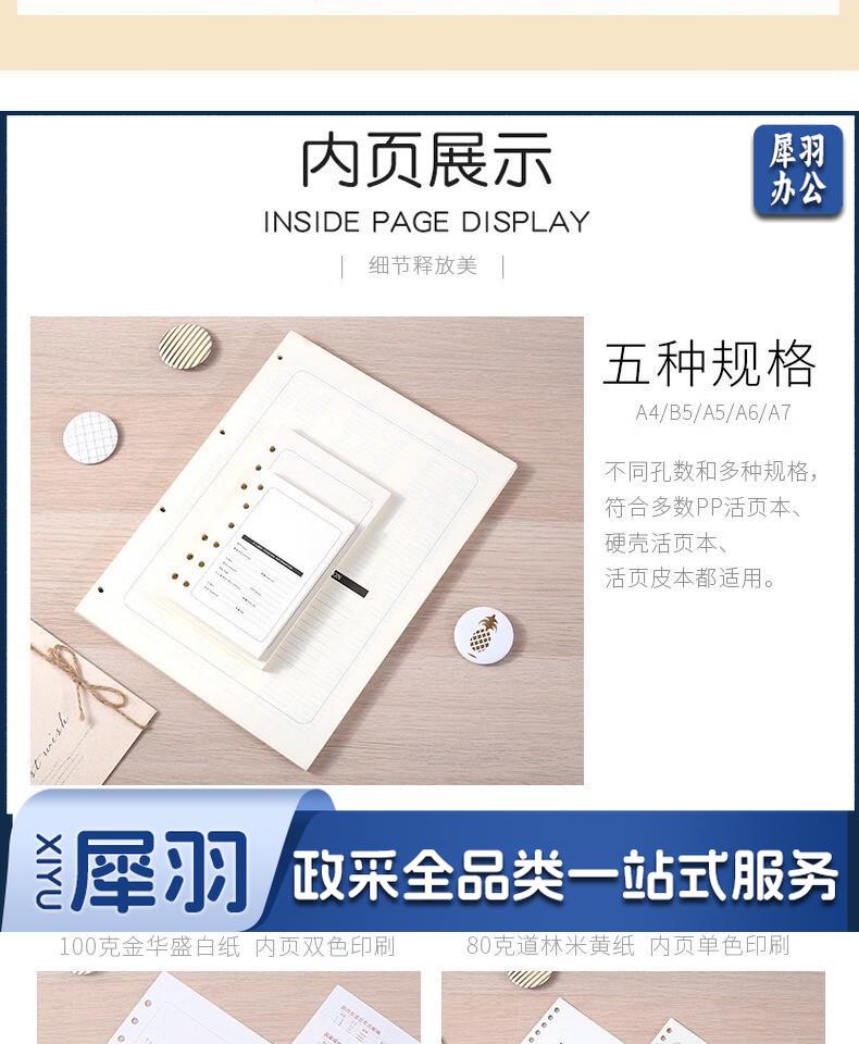 活页本替换芯A4B5A5A6A7替换内页9孔26孔活页本芯6孔20孔替换芯活页纸可拆卸备用内芯 A5(6孔80克纸)84张
