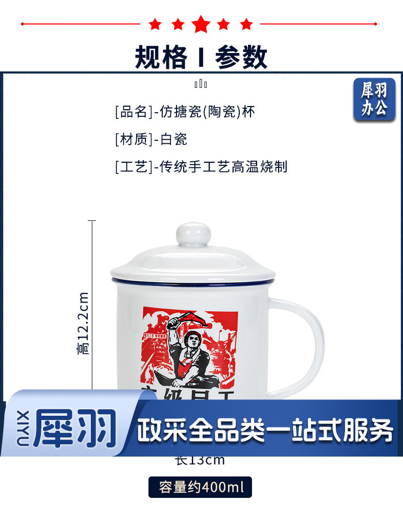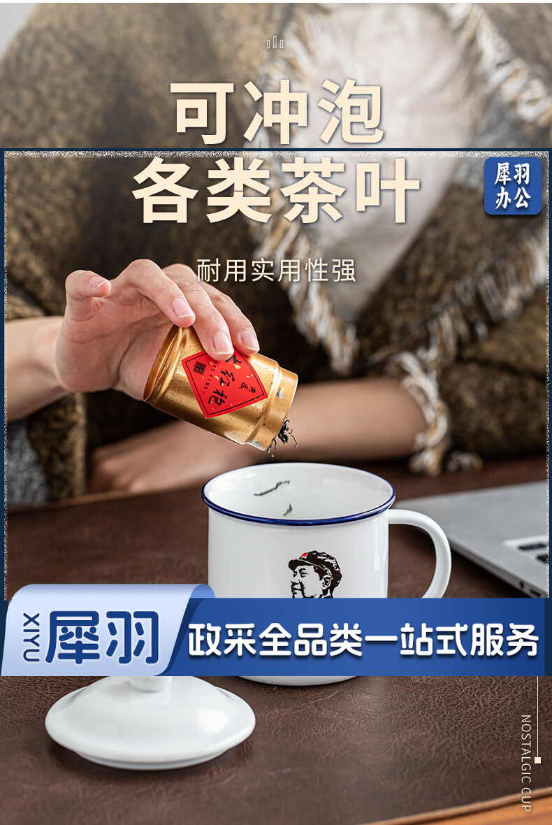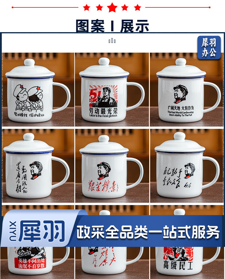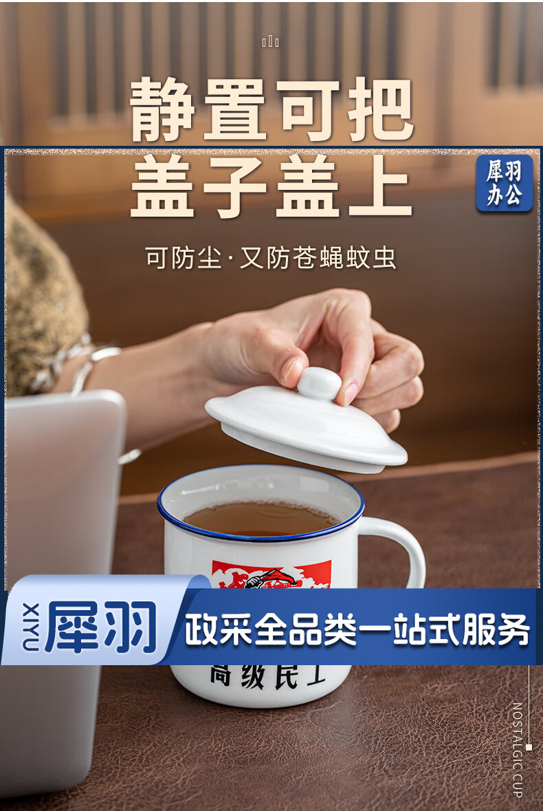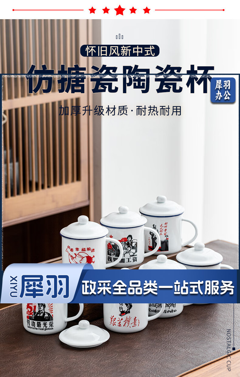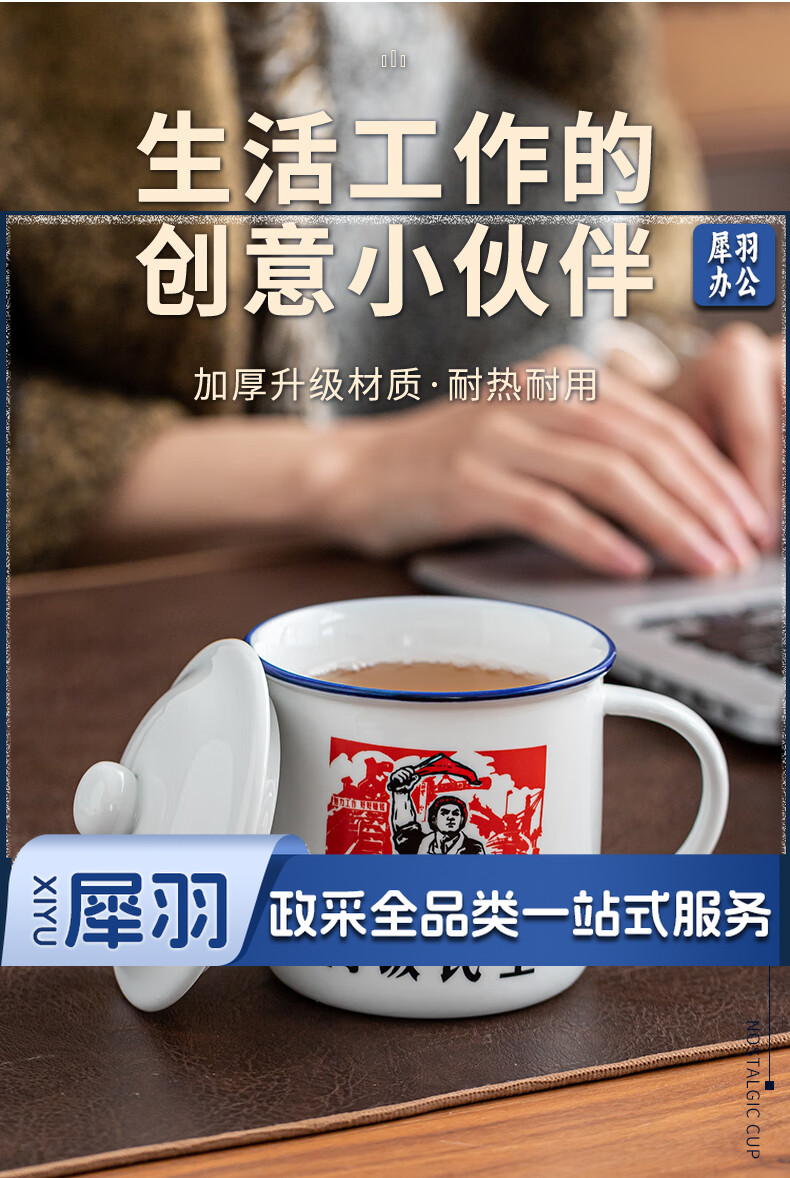 陶瓷马克杯带盖复古水杯办公室创意个性潮流怀旧经典仿搪瓷杯杯子 【450ml加厚款】为人民服务-cpy6811-cpy2033