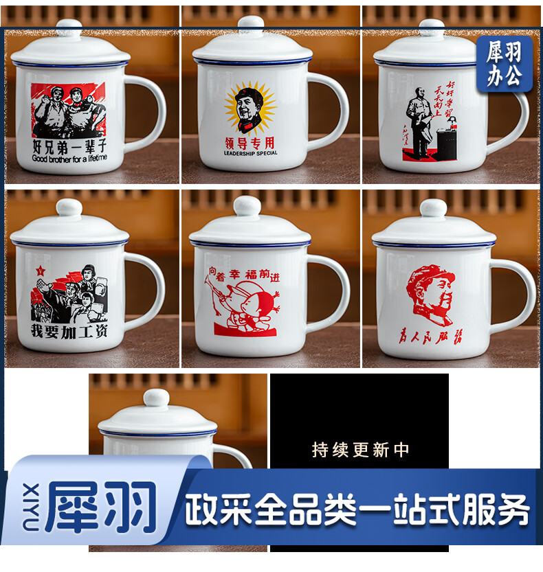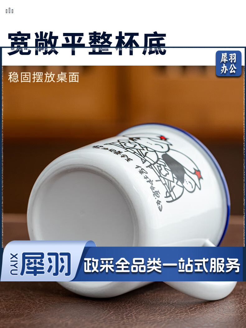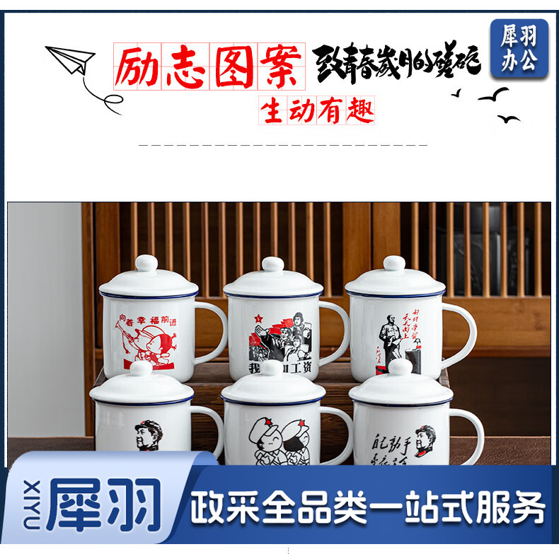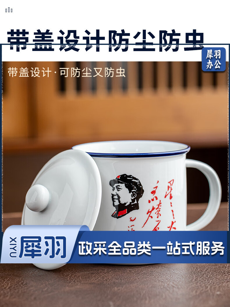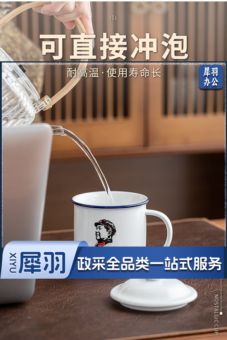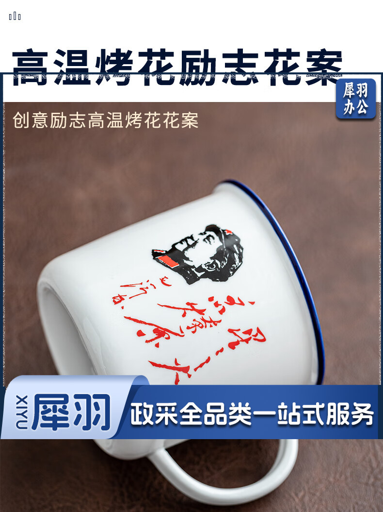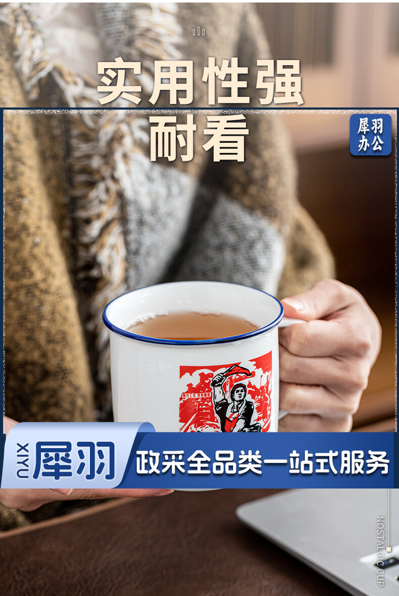 陶瓷马克杯带盖复古水杯办公室创意个性潮流怀旧经典仿搪瓷杯杯子 【450ml加厚款】为人民服务-cpy6811-cpy2033