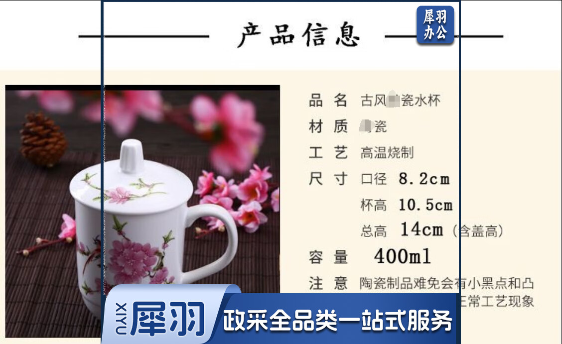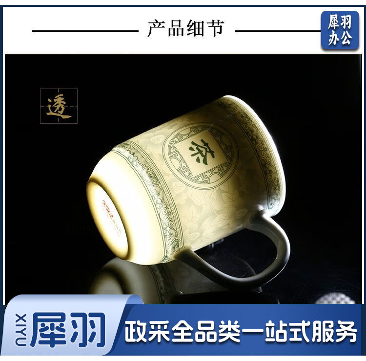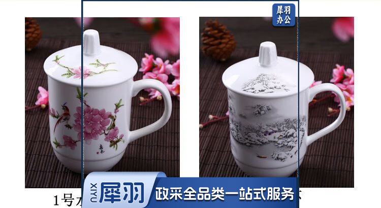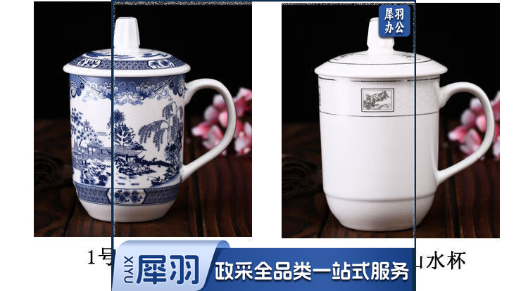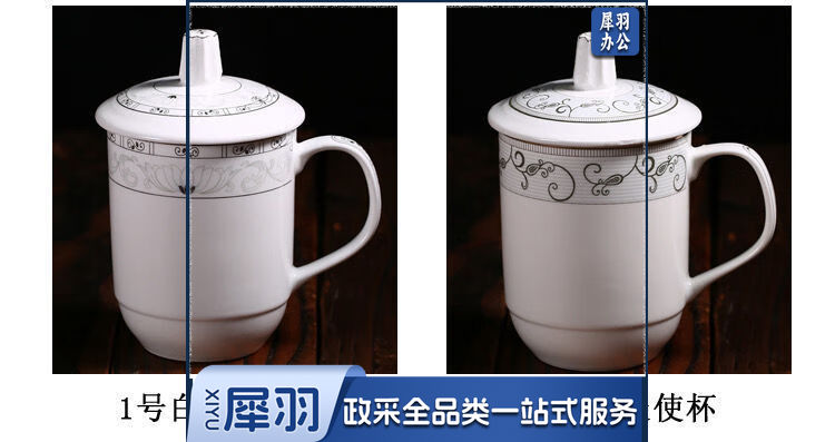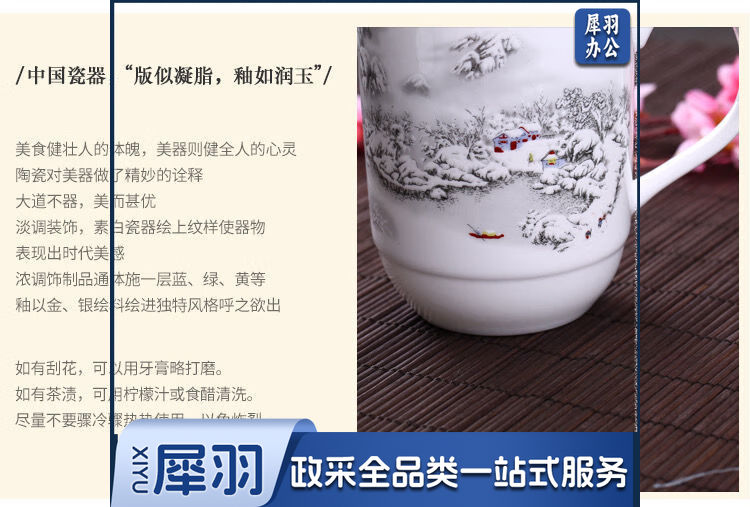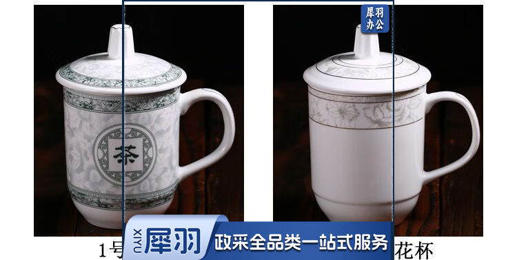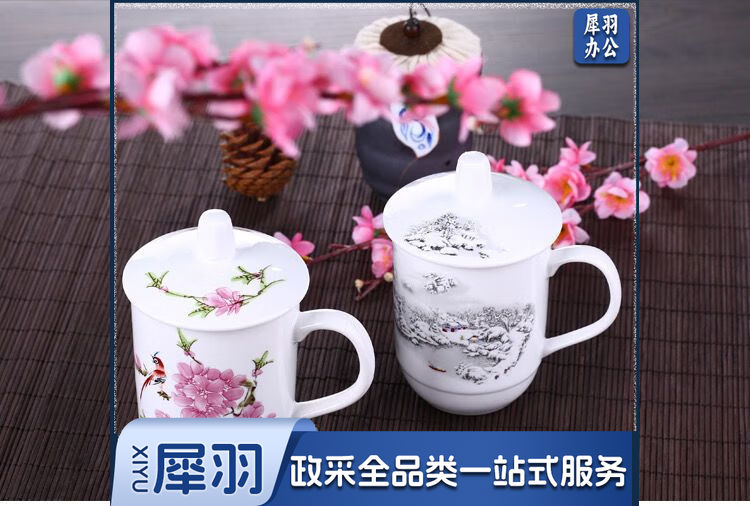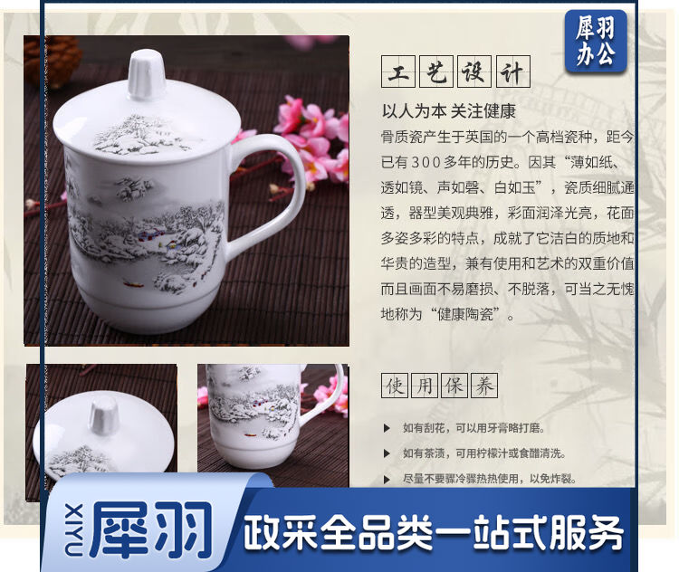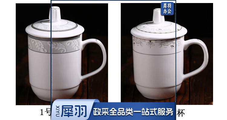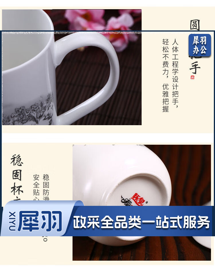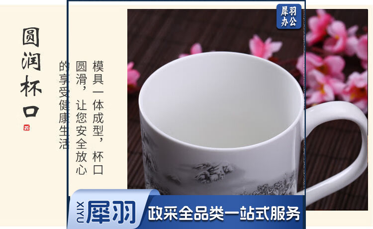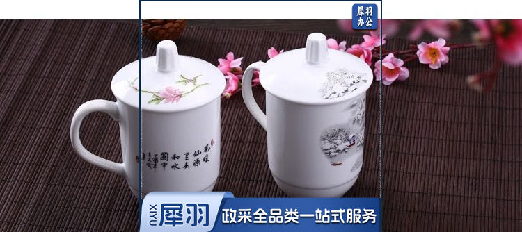 景德镇陶瓷杯会议办公室水杯带盖家用陶瓷水杯套装酒店宾馆茶水杯 墨竹-cpy3289