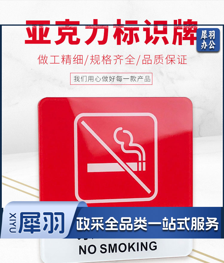 禁止吸烟提示牌 亚克力门牌标牌指示牌 10*10cm学校公司工厂标识牌警示牌 节约用电随手关灯-cpy6834-cpy4495