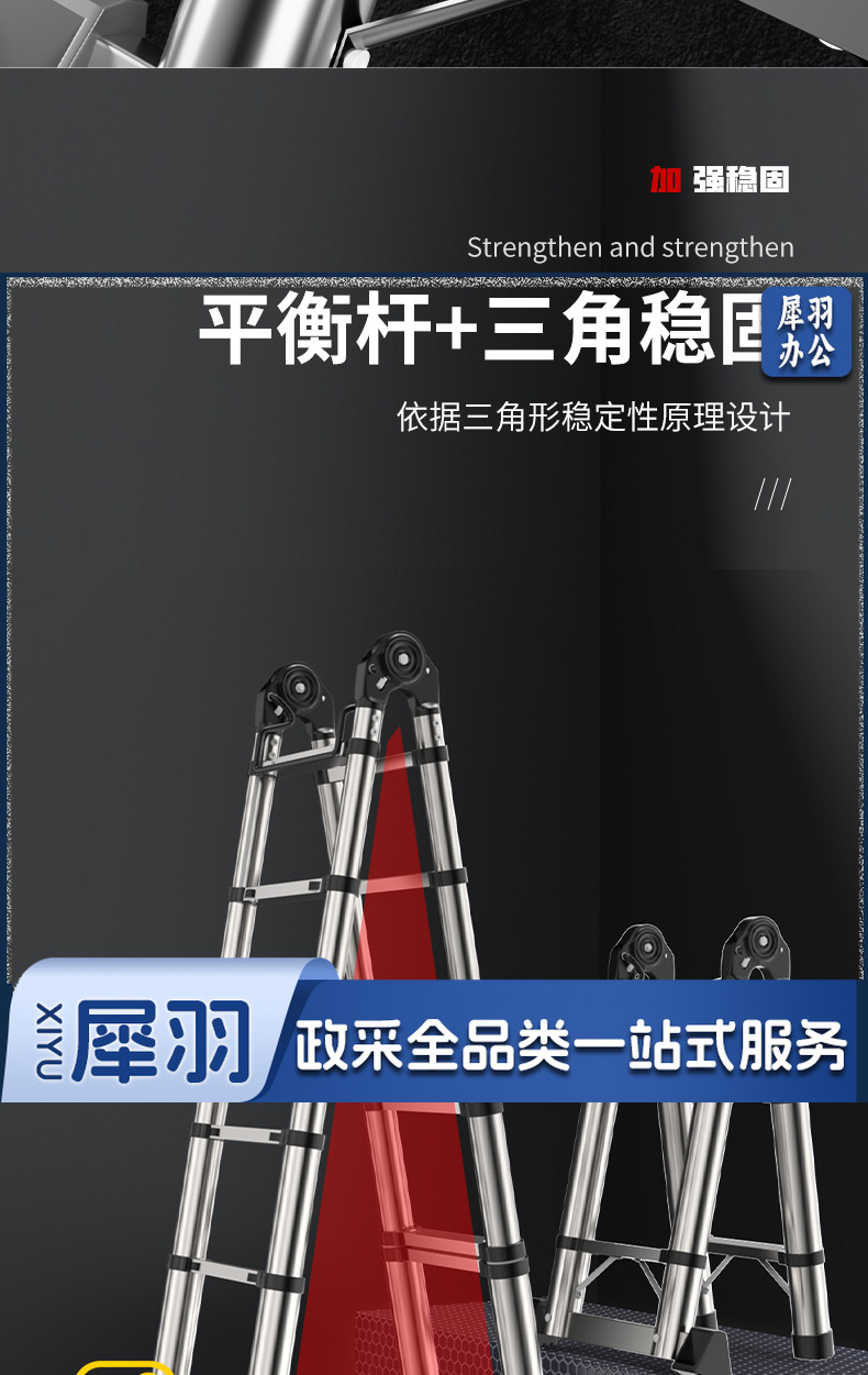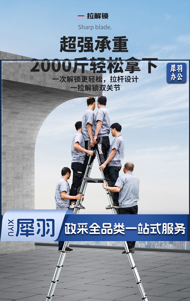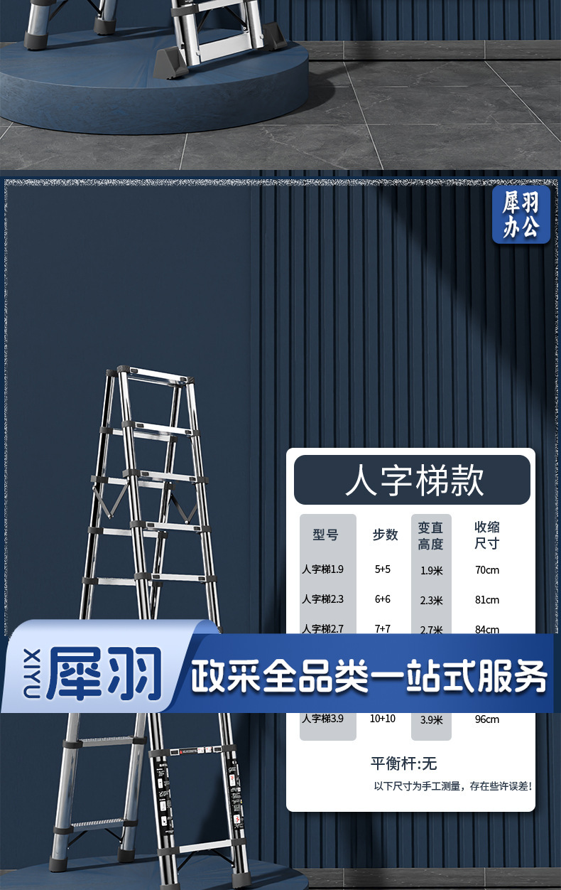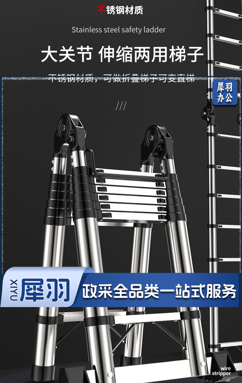 人字梯 3.9米不锈钢伸缩梯子多功能家用人字梯便携折叠梯竹节梯升降步梯-cpy6258-cpy1048