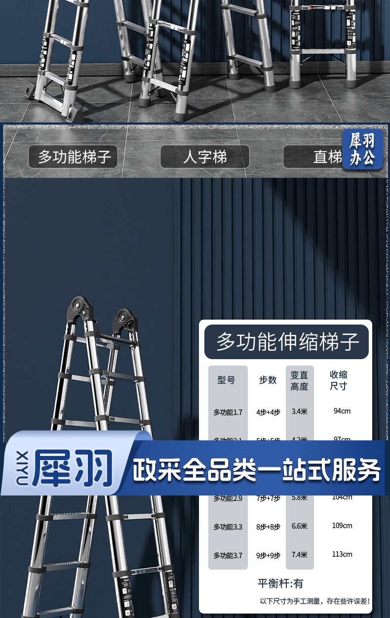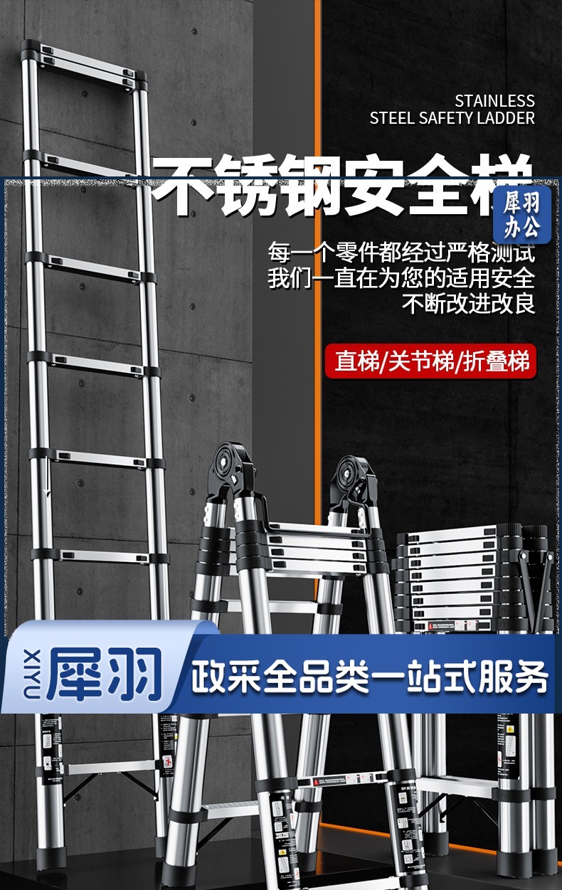 梯子 人字梯 3.7米 不锈钢多功能3.7+3.7米=直梯7.4米梯子、-cpy5316-cpy694-cpy9307